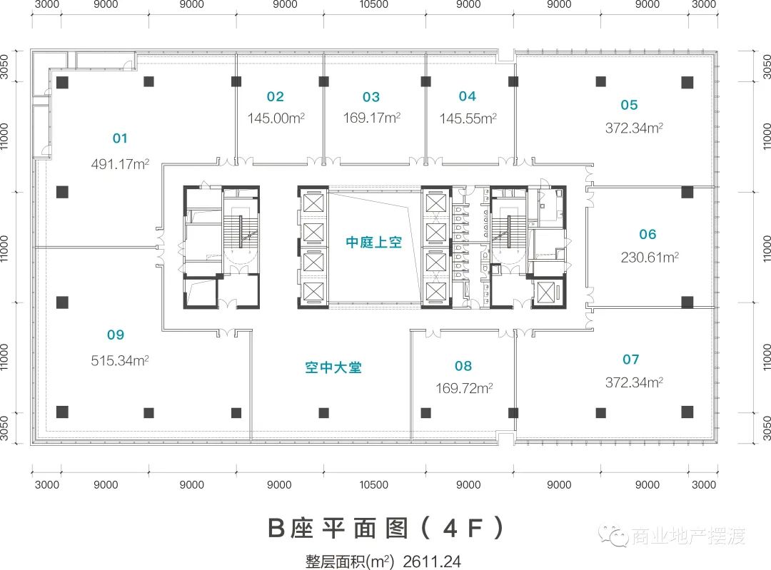 采用前瞻性设计理念,打造两层挑高大堂,营造大格局的阔朗感,匹配总部菁英的开阔眼界,创新性地打造采光中庭、休闲阳台、共享空间、屋顶花园等舒适空间;每三层设置一个空中大堂,为会展总部企业提供更优质的办公空间和商务环境。