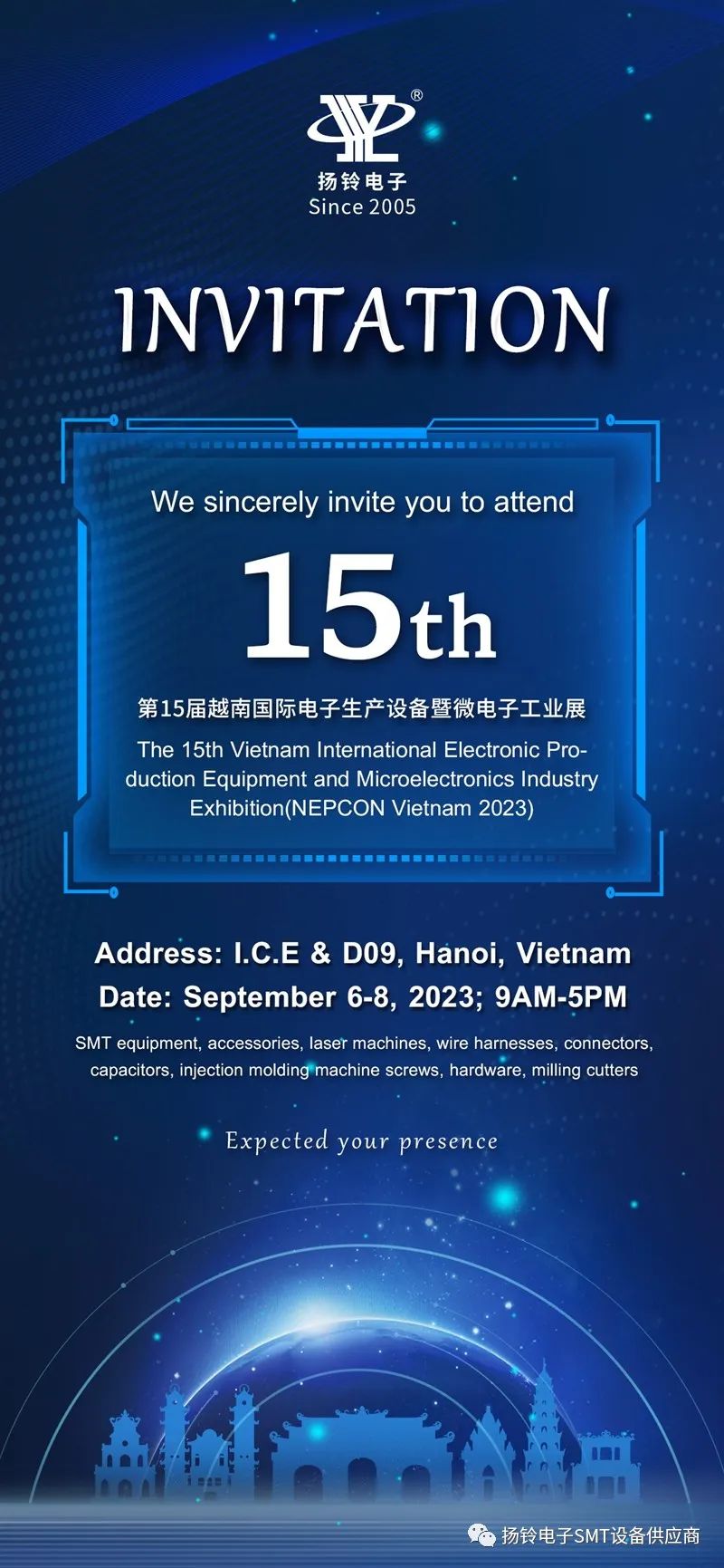 扬铃电子和您一起走进期待已久的2023“第十五届越南电子生产设备暨微电子工业展”,展会于今日在越南河内展览中心(I.C.E)盛大开幕。