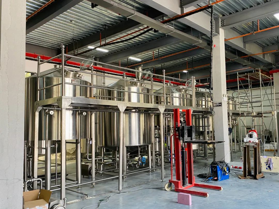 在项目建设现场,可以看到厂房的水、电、室内外基础改造、厂房隔断改造等已经全部完成,糖化罐、发酵罐等设备正在进行安装。预计9月底进行试生产。