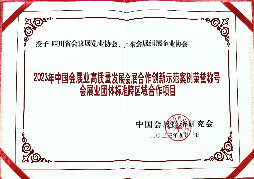 经过专家评审,由四川省会议展览业协会和广东会展组展企业协会联合发起的“会展业团体标准跨区域合作”项目入选“2023年中国会展业高质量发展会展合作创新示范案例”。这是对团标共建工作的高度认可,更是对17省市联合体的极大鼓励。下一步,联合体将切实推进团体标准的落地实施和推广运用,充分发挥团标在规范市场主体行为、促进产业转型升级等方面的积极作用。同时,将充分利用联系政府、熟悉行业、贴近企业的优势,链接更多资源,在建立健全会展业标准体系方面持续发力,全力推动会展业标准互联互通,实现互利共赢、共同发展。