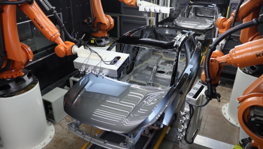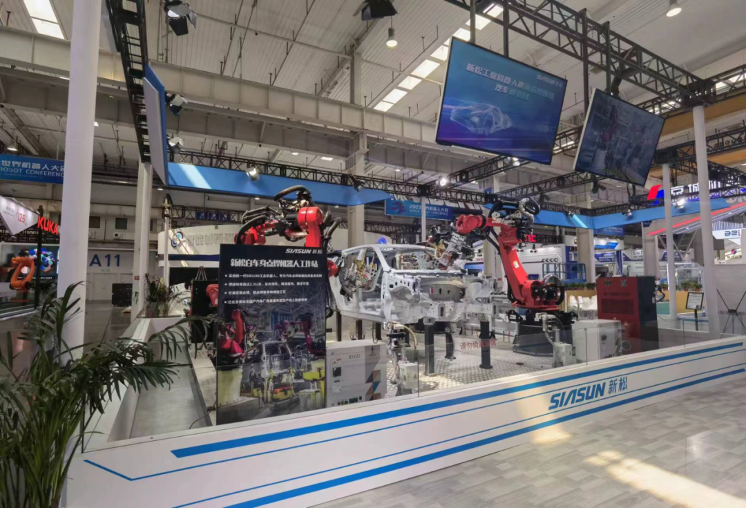新松展出由4台SR210D工业机器人组成的白车身点焊机器人工作站。新松SR210D工业机器人,专为点焊应用量身定制,搭载新松基于复杂工况自主开发的新一代智能控制系统,焊接效率高达2.2s/点,实现行业领先。可适配市面多种主流焊钳与点焊控制器品牌,满足钢点焊、铝点焊等多种焊接工艺需求。
