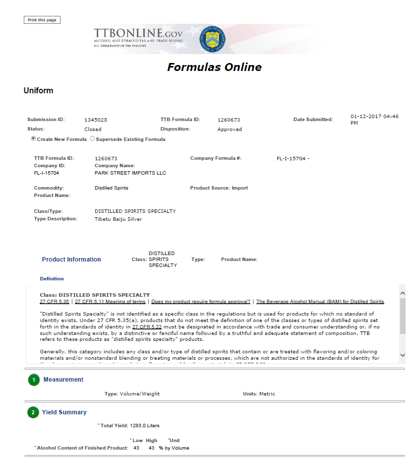 2015年,天佑德获得TTB(美国烟酒税收贸易局)认证,并成功进入美国市场。TTB是美国酒类及烟草税务贸易局的英文简称,是美国财务部下属的一个机构,主要负责美国酒类进口管理工作。该机构对酒类产品的监管较为严格,对质量要求很高。获得TTB认证,则意味着产品获得了在美国市场,甚至国际市场的通行证。