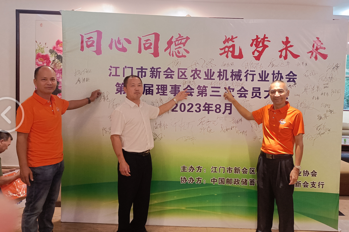 8月30日下午,江门市新会区农业机械行业协会(以下简称“农机协会”)第五届理事会第三次会员大会在新会龙泉酒店聚龙楼二楼会议中心隆重举行。大会邀请到新会区委统战部副部长、区工商联党组书记钟炳超,新会区农业农村局副局长谭向阳,以及区工商联、区农业农村局有关领导出席活动,参与大会的还有到场的87名会员(新会员28人)。