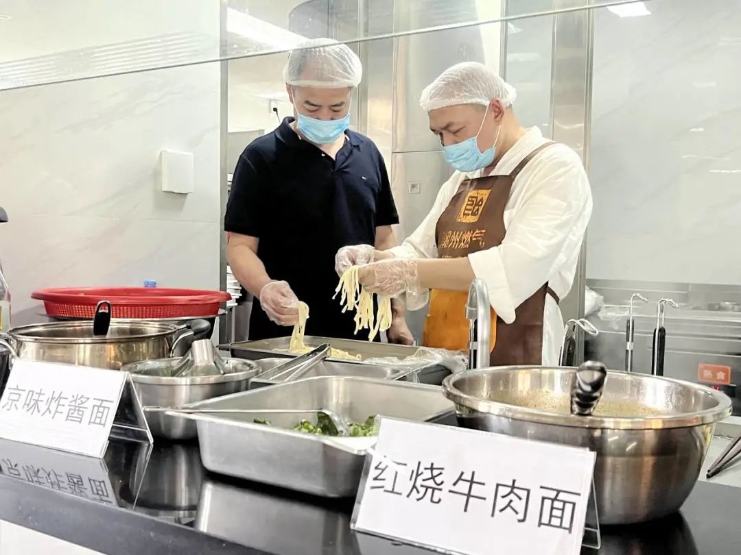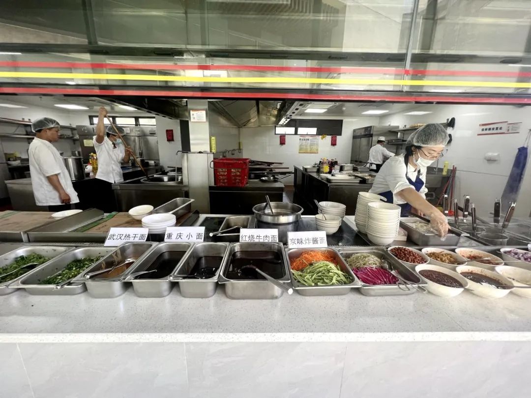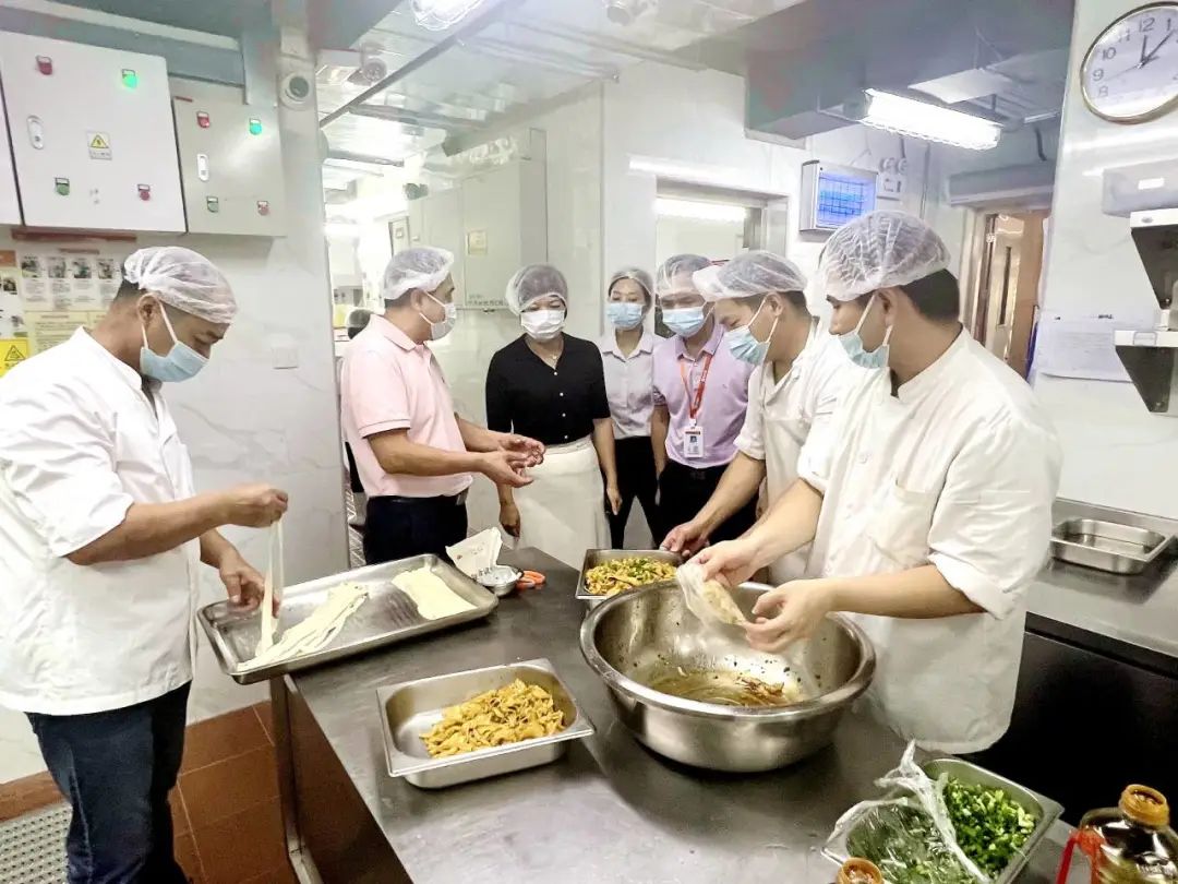 新型面点标准化流程可以避免因厨师个人操作和客观条件不同导致的菜品口味差异现象。如今,集团员工食堂的师傅们制作各类风味面食都只需三步即可完成:首先将食材按照所需份额提前进行加工制作,然后引进复合调味技术,预制风味酱汁,最后现场烹煮。从原料加工到出品,操作方便、流程精简,大大提高了食堂工作效率,实现了面点品质的统一管理,有效促进集团餐饮标准化服务水平进一步提升。