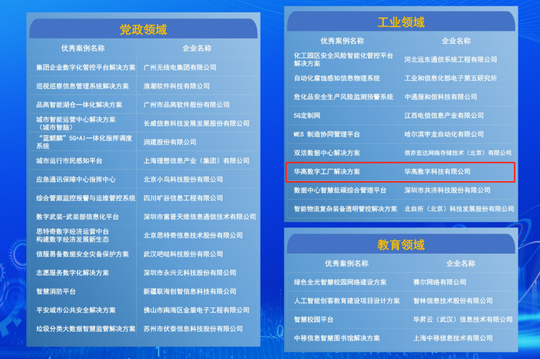9月6日下午,由中国电子行业联合会征集的“企业数字化转型优秀案例”在2023年中国国际数字经济博览会期间正式发布。华高数字科技有限公司组织申报的“华高数字工厂解决方案”成功入选。