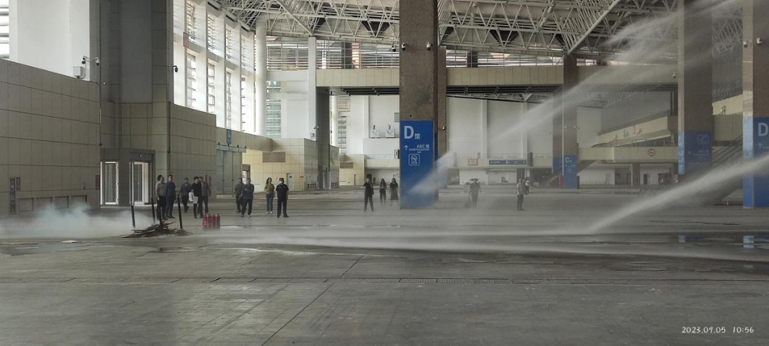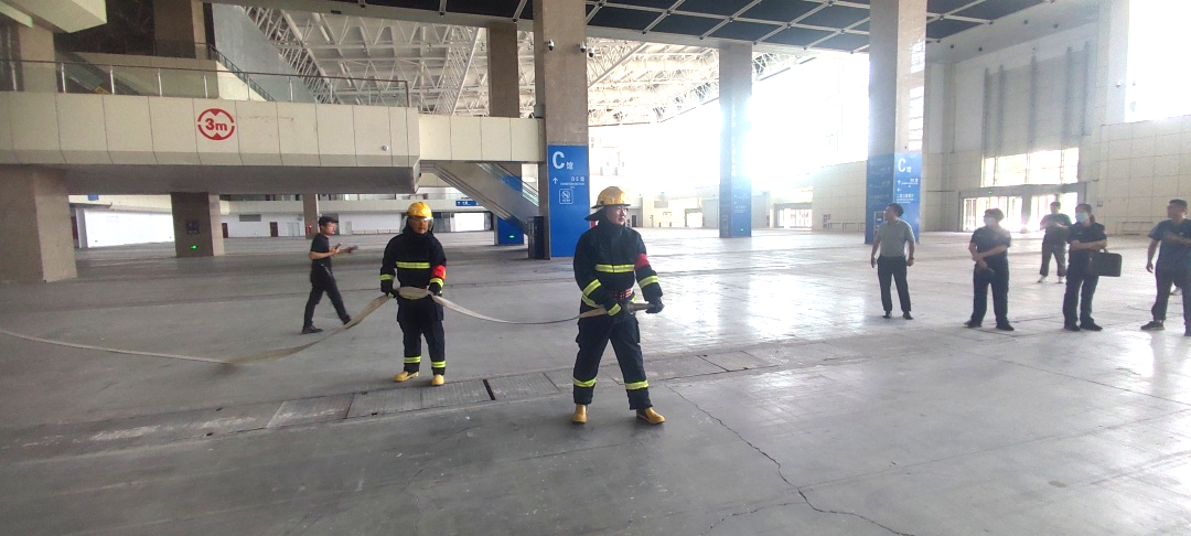 同时开展了应急疏散救援演练活动,主要模拟了会展中心CD馆内突发火灾,组织员工紧急疏散,消防水炮自动识别火情进行灭火。各演练小组密切配合,严格按照演练方案行动,有序组织人员进行疏散,CD馆消防水炮自动感应并定位,消防监控员接到报警信息后立即按操作规程转为自动状态,水炮朝火焰方向准确喷射出水柱,最终扑灭火焰。