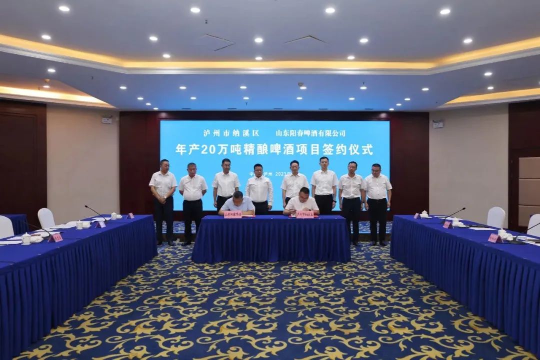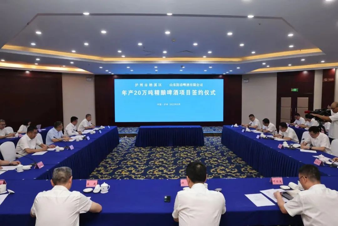 2023年9月6日上午,泸州市纳溪区与山东阳春啤酒有限公司年产20万吨精酿啤酒项目在中国酒城泸州举行签约仪式。市委书记杨林兴,副市长、自贸区川南临港片区党工委书记王斌达,纳溪区委书记谭荣兵,纳溪区长袁维荣等泸州市领导;华尔云(海南)投资集团有限公司董事长李江、总经理王宸铭,山东阳春啤酒有限公司董事长周志宏,山东阳春啤酒有限公司西南分公总经理陈源等领导出席签约仪式。签约仪式由泸州市副市长、自贸区川南临港片区党工委书记王斌达主持。