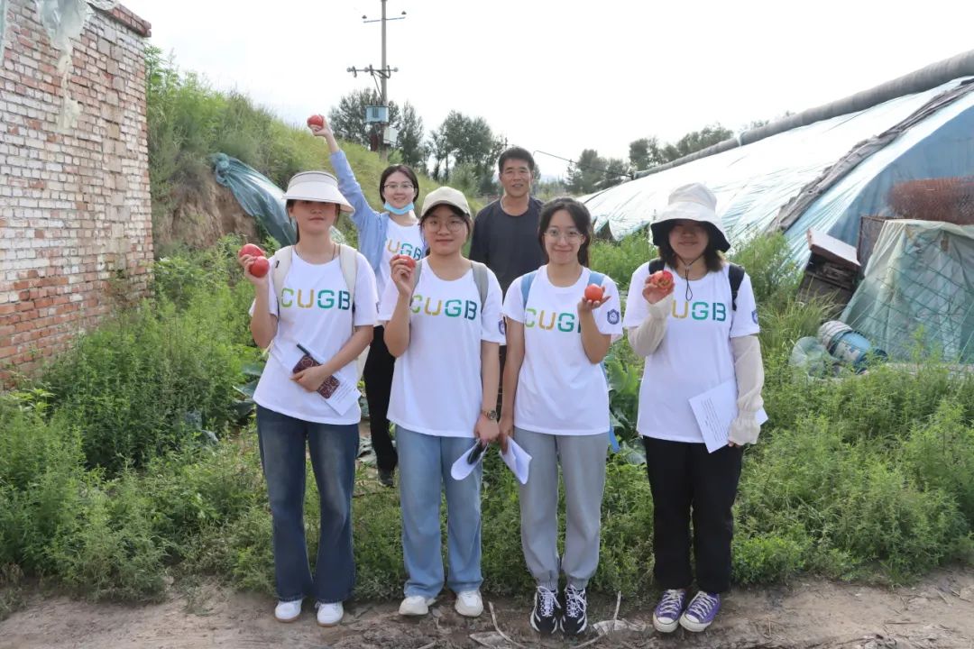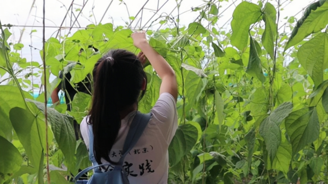 元墩村在乡村振兴系列政策的支持下农业基础持续夯实,农业园区建设成效明显,实践团在蔬菜大棚管理员带领下,参观了解了温室大棚的种植种类、种植方式和策略。部分当地居民以大棚种植蔬菜作为主要经济来源,主要作物有西红柿,黄瓜,豆角,实践团了解到豆角需要定期缠在绳子上才能更好得生长、出现番茄疫病要加强通风排水等,但种植过程中一些病虫害等现象还没有彻底解决方案。通过亲自体验参与了部分农作物种植、采摘工作,实践团对当地的生产方式也有了更深刻的理解。