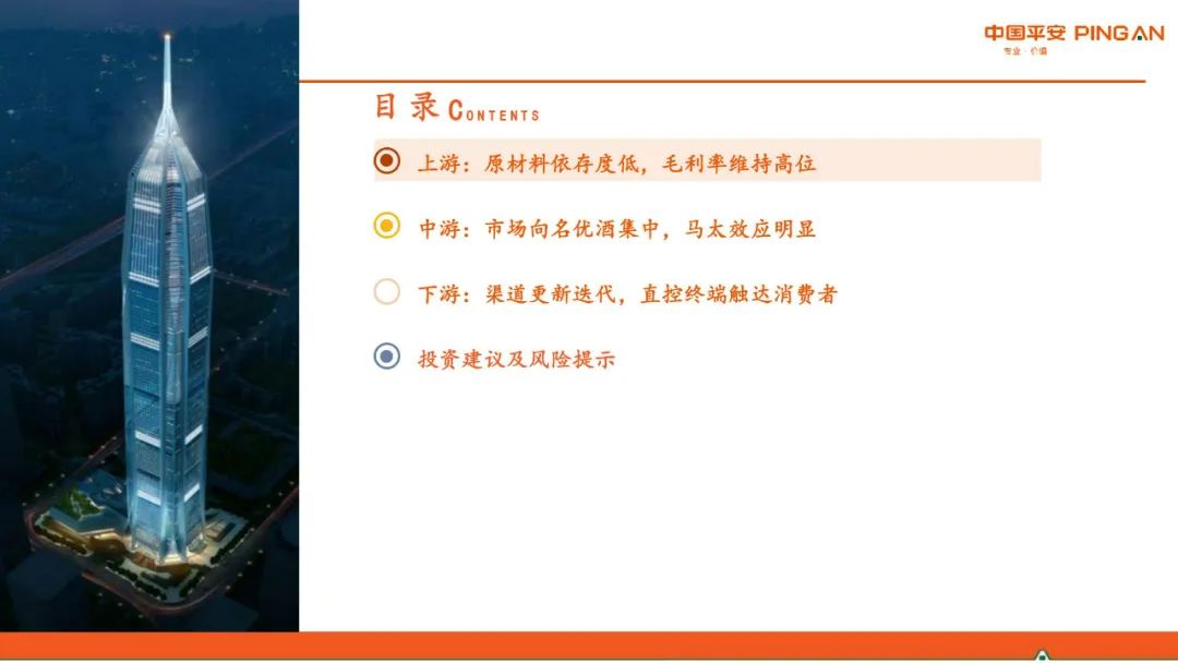 主流的白酒企业毛利率稳定维持在70%-90%,对于上游的依赖度较低。