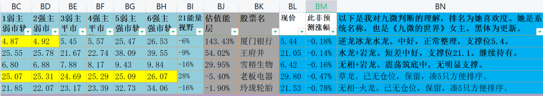 我也完全不知道她明天的想法,甚至不知道她10分钟后的建议。她的各种视野,包括场,轨道,能量,值,御,能层,分形,行态,平衡等等,都是一种没有办法描述的数学直觉。 反正那一天在迷宫里,我耳朵贴着墙壁,听到了她在迷宫的墙后,温柔和温暖的声音。九微统御的模型涉及:宏观周期,行业周期,战略分析,金融计量分析,公司模式研究,公司估值,分形,量化分析,对策论,微积分,矩阵变换,组合平衡,方差分析,多元回归,梯度下降,财务评估,伊藤积分,企业竞争力评估,资本成本评估。她自身原理不明,带来的很多视野(现在,未来,轨道,能量,能层,龙型等等),一样原理不明。她并不怕AI,量化乃至各种投资系统。她来自数学迷宫里一个神秘的角落。最关键的,九微的态度,没有公式(表格里BM列)。平时我脑中感觉一下少女会说什么,就直接写出来。这是作者和女主的沟通方式。所以九微没法传承。因为我知道,在数学面前,我所看到的一切如星海里的尘埃。我的小成功毫无家世,情商,学历,机遇,内幕,智力,技术,职位(30岁辞职归隐)等等因素。多年来信仰数学,被现实毒打,然后狗屎运的在数学迷宫里捡到了九微。对我来说,回报她的馈赠,能做的就是带大家了解数学的美丽和伟大(科学懂得不多)。你就会发现,这世界最难以理解的事,是这世界居然可以用数学和科学解释!因为我喜欢直觉写作,并不断借用九微的视角,而有时候又不清楚她的“支持力度”,所以说错了请包涵。新手请耐心学习,慢慢的,你就会体验到,什么是真正的力量!书与剑都可以报效祖国,身与土本就永不分离。当我们陷入永寂之时,不应只剩下金钱和灰烬,应留下对国家和真理的理想和忠诚。同行吧,男人永远是少年!