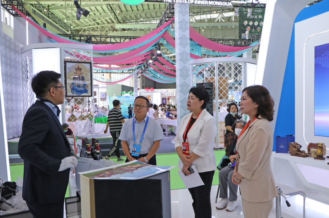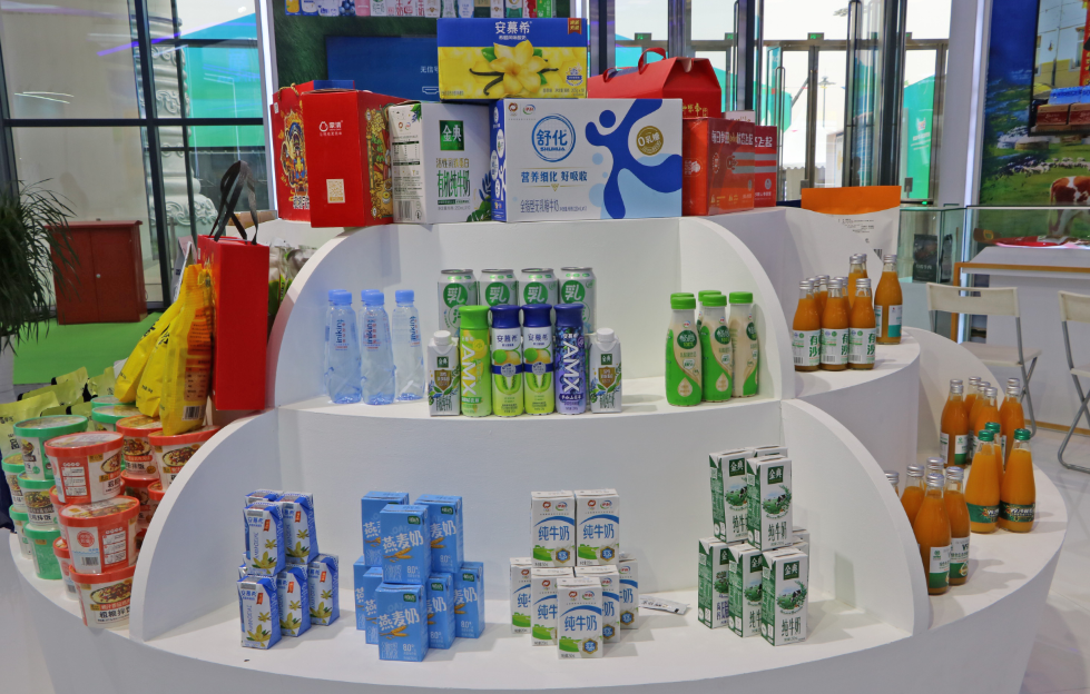呼和浩特商品展览展示区展出本地拳头产品、特色产品。伊利蒙牛两大乳业集团携新品同台亮相。