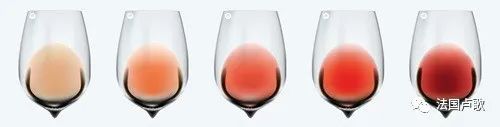 对葡萄酒颜色的深度做快速笔录。观察其颜色深度:特别深浓或是浅淡?对于红葡萄酒来说,是宝石红色(紫红色)还是石榴红色(橙红色)? 紫色象征着年轻的葡萄酒。颜色偏紫的被称为紫葡萄酒。而橙色、琥珀色和棕色则代表陈年的葡萄酒。偏向这些颜色而不是红色的被称为茶色葡萄酒。不过,需要注意的是有些葡萄酒颜色变化的速度比较快,因此通过颜色来判断葡萄酒的年龄可能不是绝对准确。对于白葡萄酒来说,是柠檬色(黄色中泛有绿色)还是金黄色(黄色中泛有橘黄色)? 绿色代表年轻的葡萄酒,而橘黄色和褐色则代表陈年的葡萄酒。对于桃红葡萄酒来说,明亮的紫粉色代表年轻的葡萄酒,略带橙色和棕色代表陈年的葡萄酒。