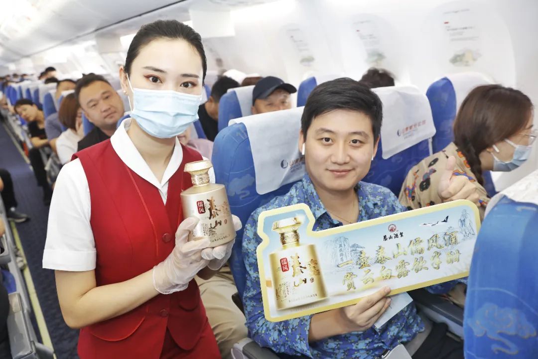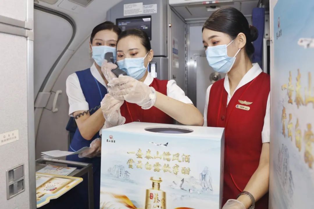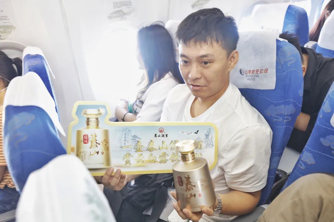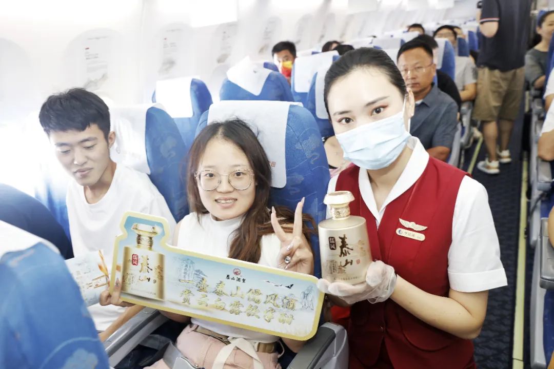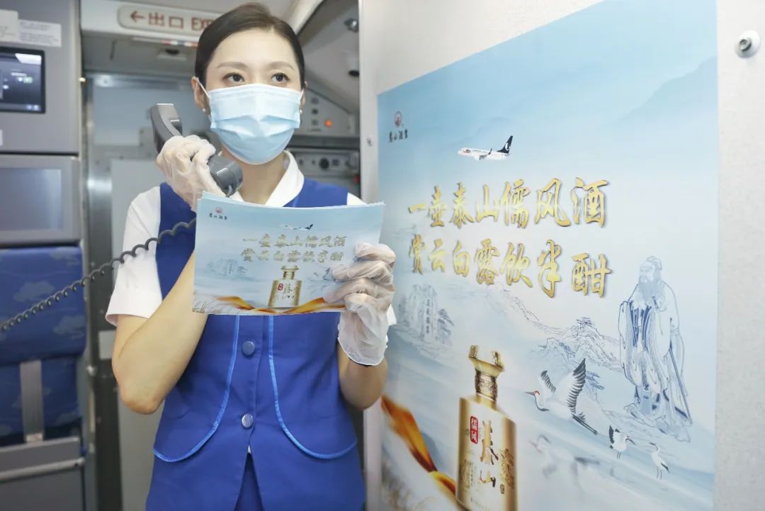 “尊敬的各位旅客大家上午好,我是本次航班的乘务长。很高兴在白露即将到来之时与您相聚在万米云端,乘坐山东航空携手泰山酒业打造的主题航班。本次航班是由泉城济南飞往鹿城三亚,请允许我代表本次航班的机组人员祝所有的朋友们畅享本次快乐旅程。”伴随乘务长优美的广播,一场儒风泰山酒新品空中推荐会拉开帷幕。