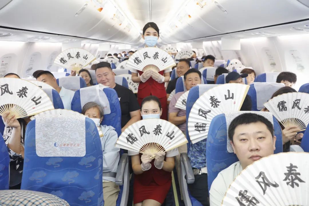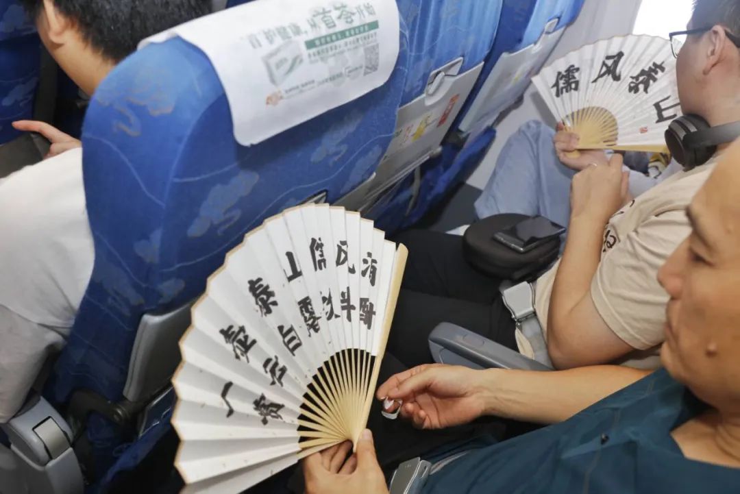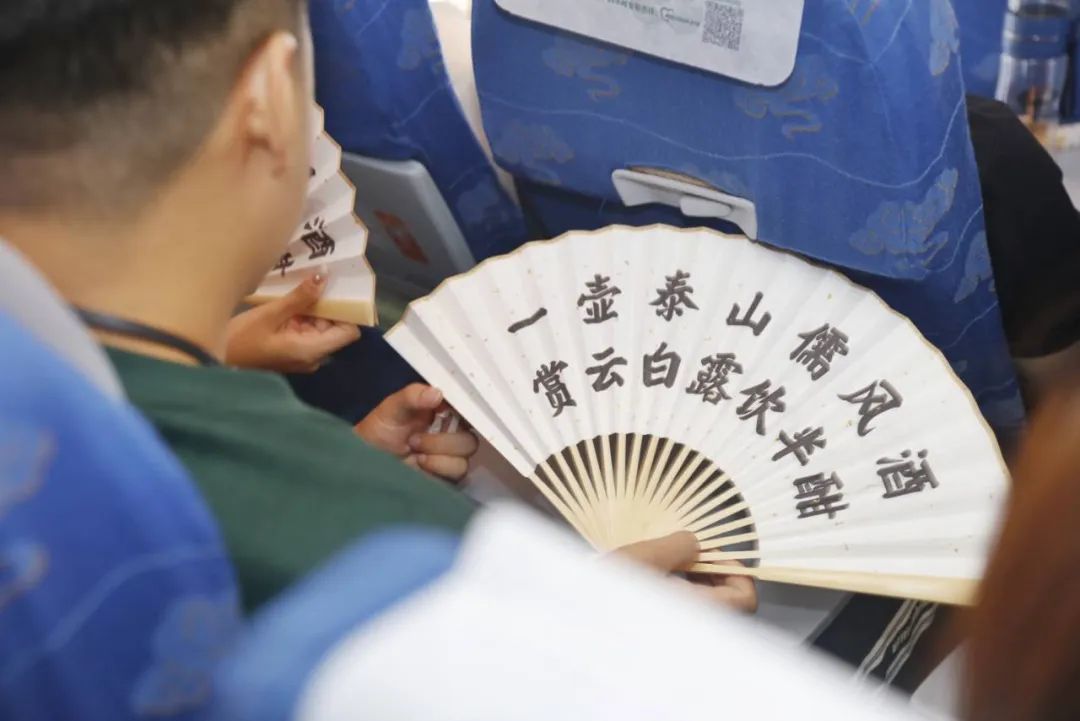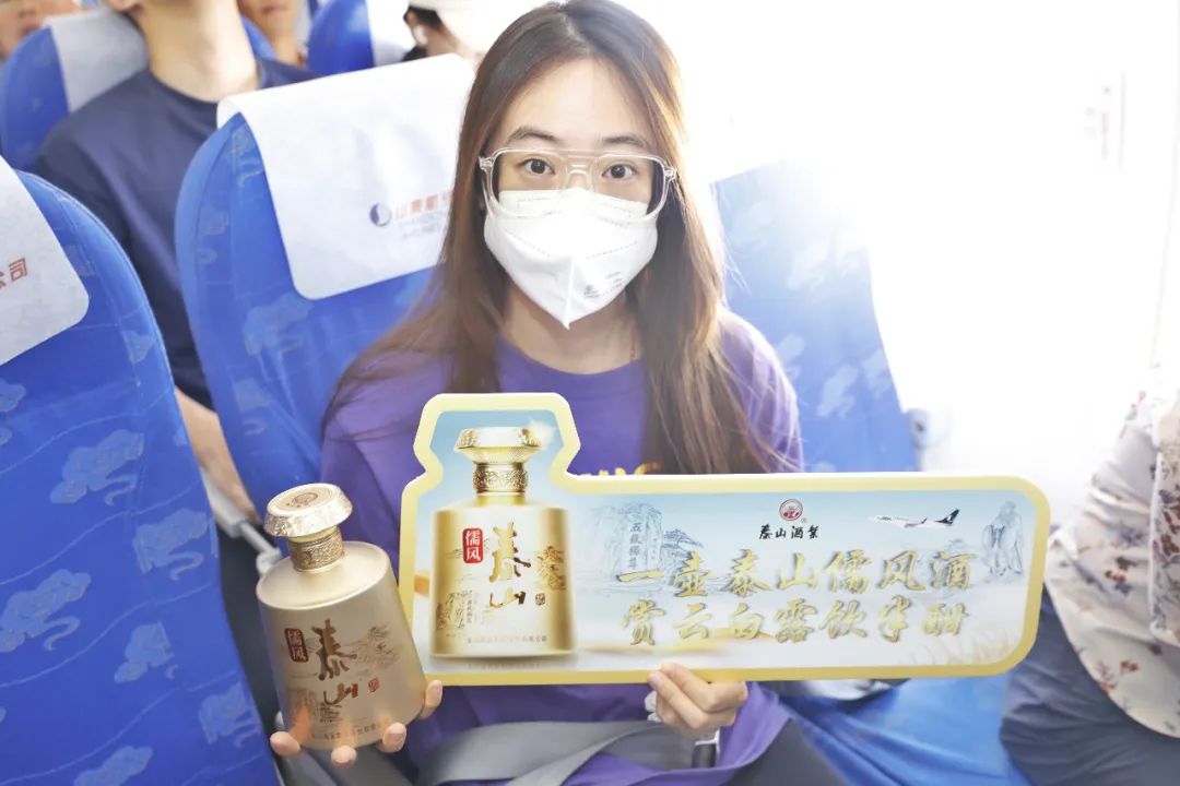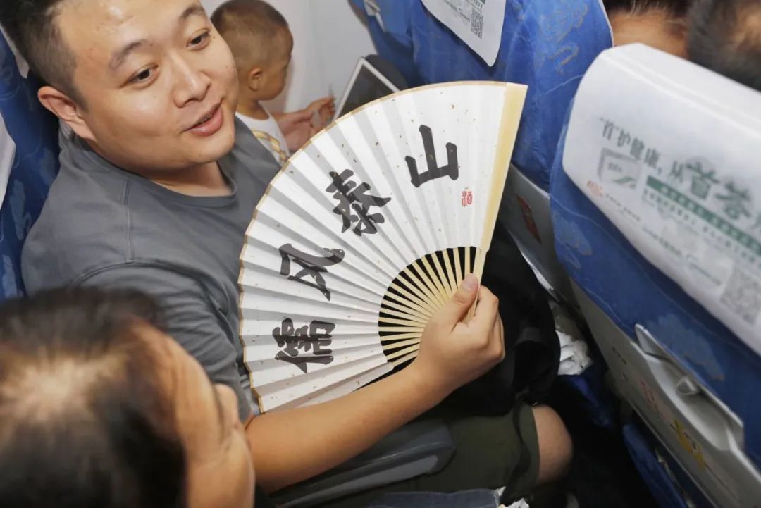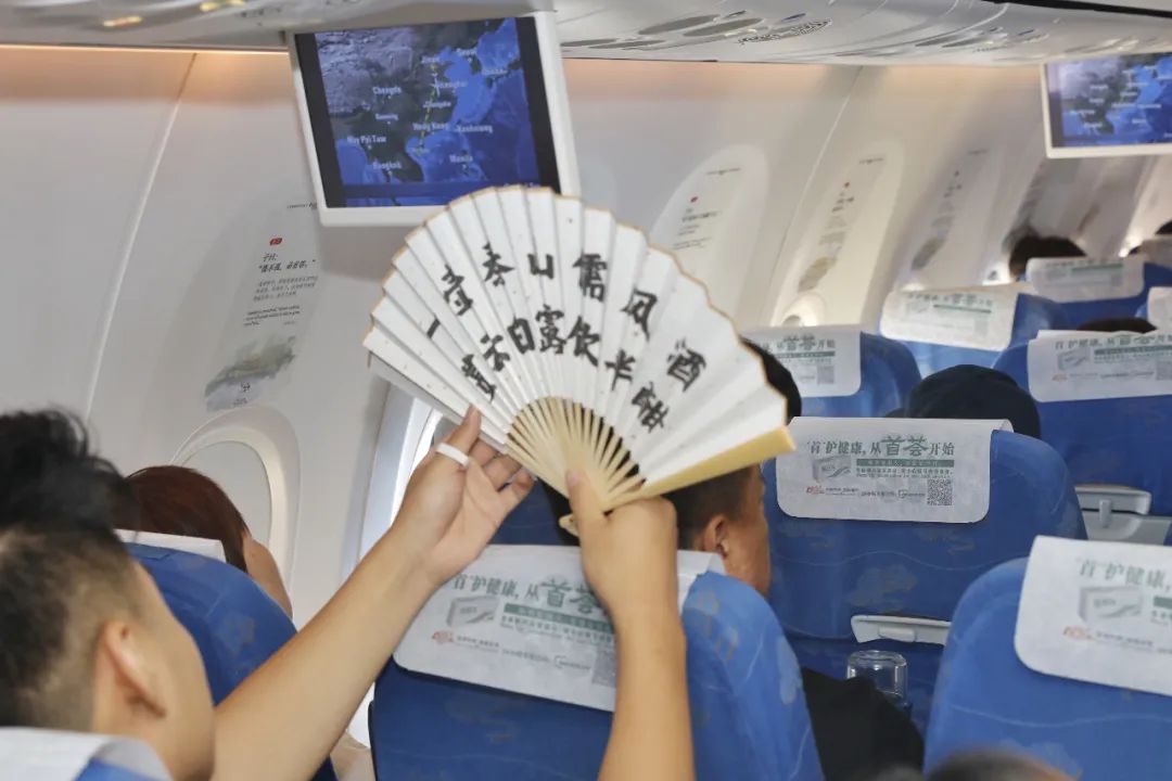 这不禁让人联想起文人墨客在泰山之上,执扇作诗的画面,给人温文尔雅之感。为此,在传统节气到来之时,泰山酒业特意准备了儒风之气的雅扇,送给乘坐本次主题航班的每一位旅客,向大家送上秋日美好祝福,愿每个人都能坚定追寻属于自己的诗与远方。