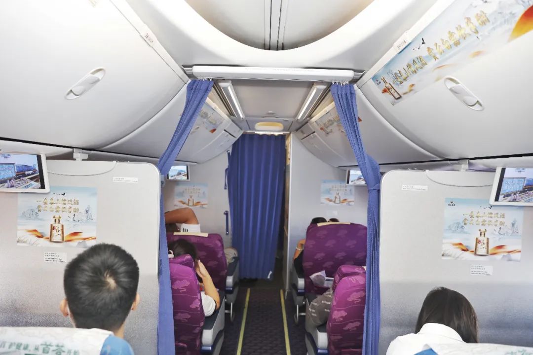白露节气后,有“白露秋分夜,一夜凉一夜”一说,秋寒容易侵身,适量饮酒可去除疲劳,舒缓身心。随着旅客朋友们高涨的热情,主题航班活动的“老朋友”,也是最让人激动的互动环节——幸运大抽奖如约而至,乘务长按照抽取座位号的方式抽取幸运旅客,送上儒风泰山酒并记录美好。