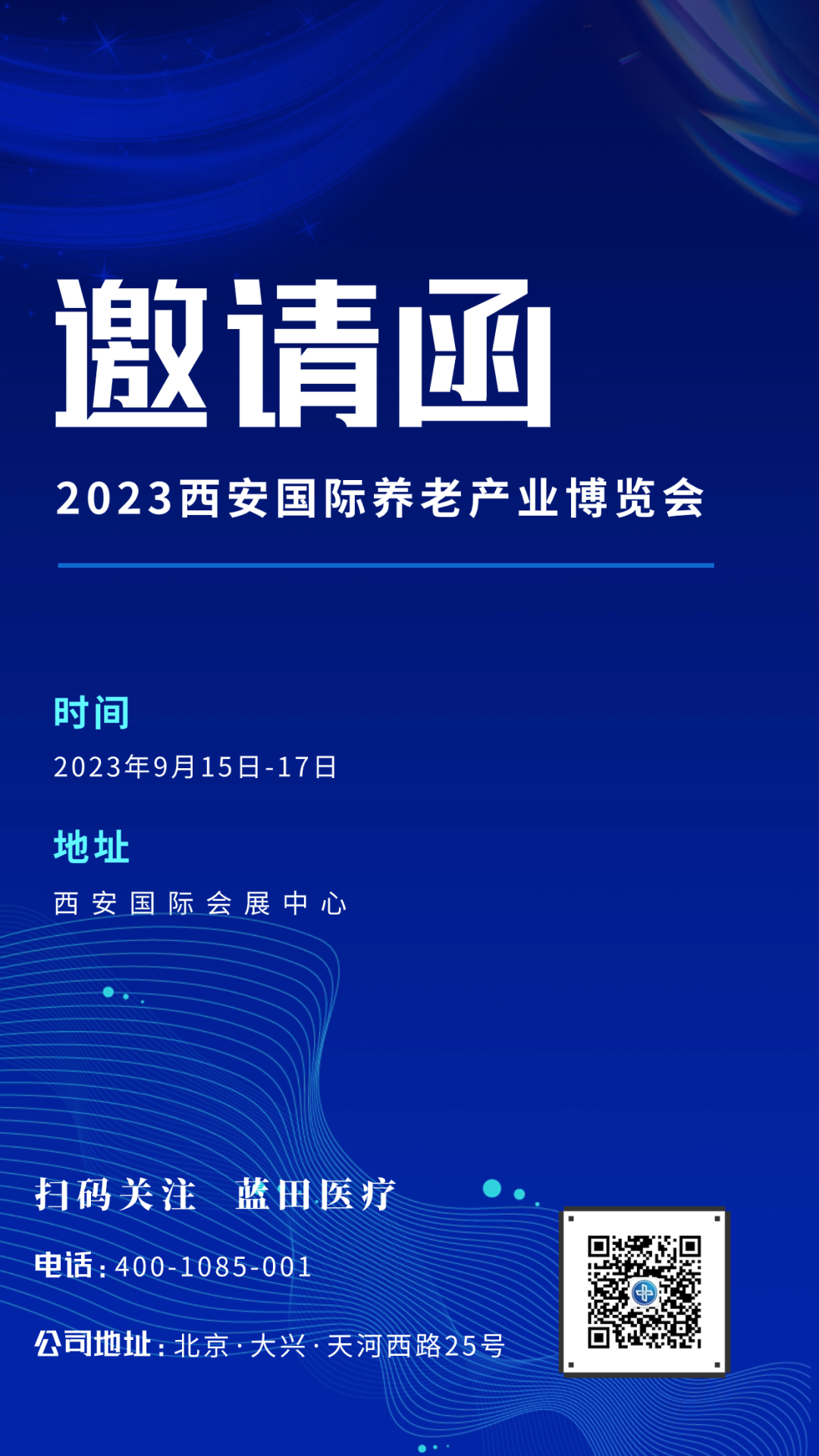 感谢您一直以来对蓝田医疗的支持与厚爱!我们诚挚邀请您出席2023年9月15-17日在西安国际会展中心举办的2023西安国际养老产业博览会。