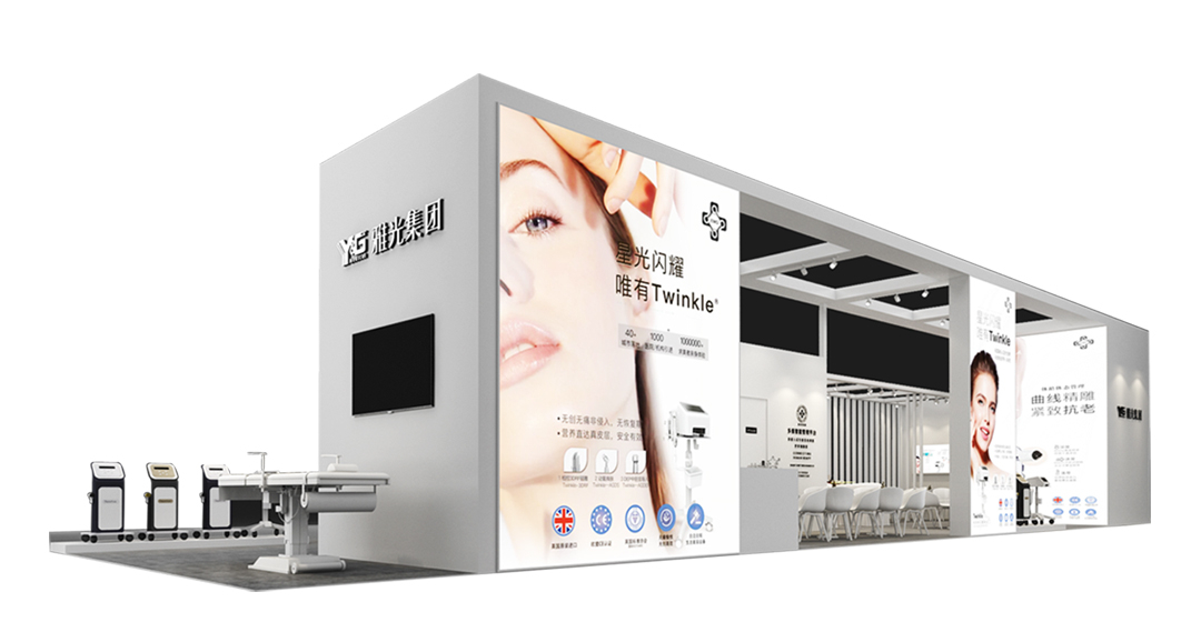 科技与实力碰撞出的臻美展台。在充满科技感的空间内,雅光多种科技仪器,互融交织,无不时刻彰显着世界一流的研发水平,所呈现的科技力量。