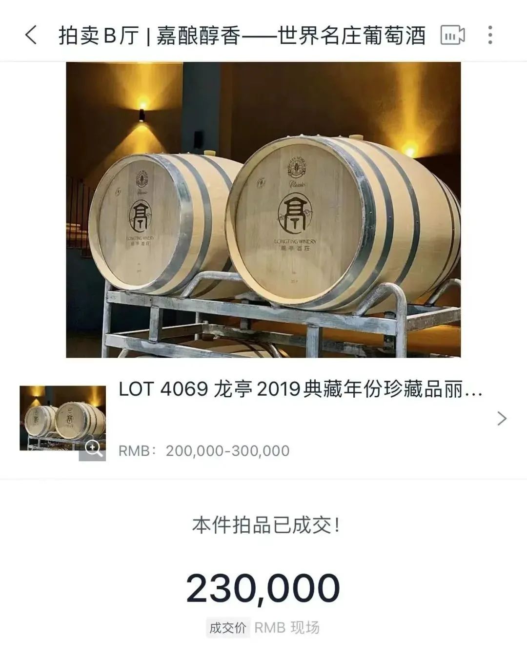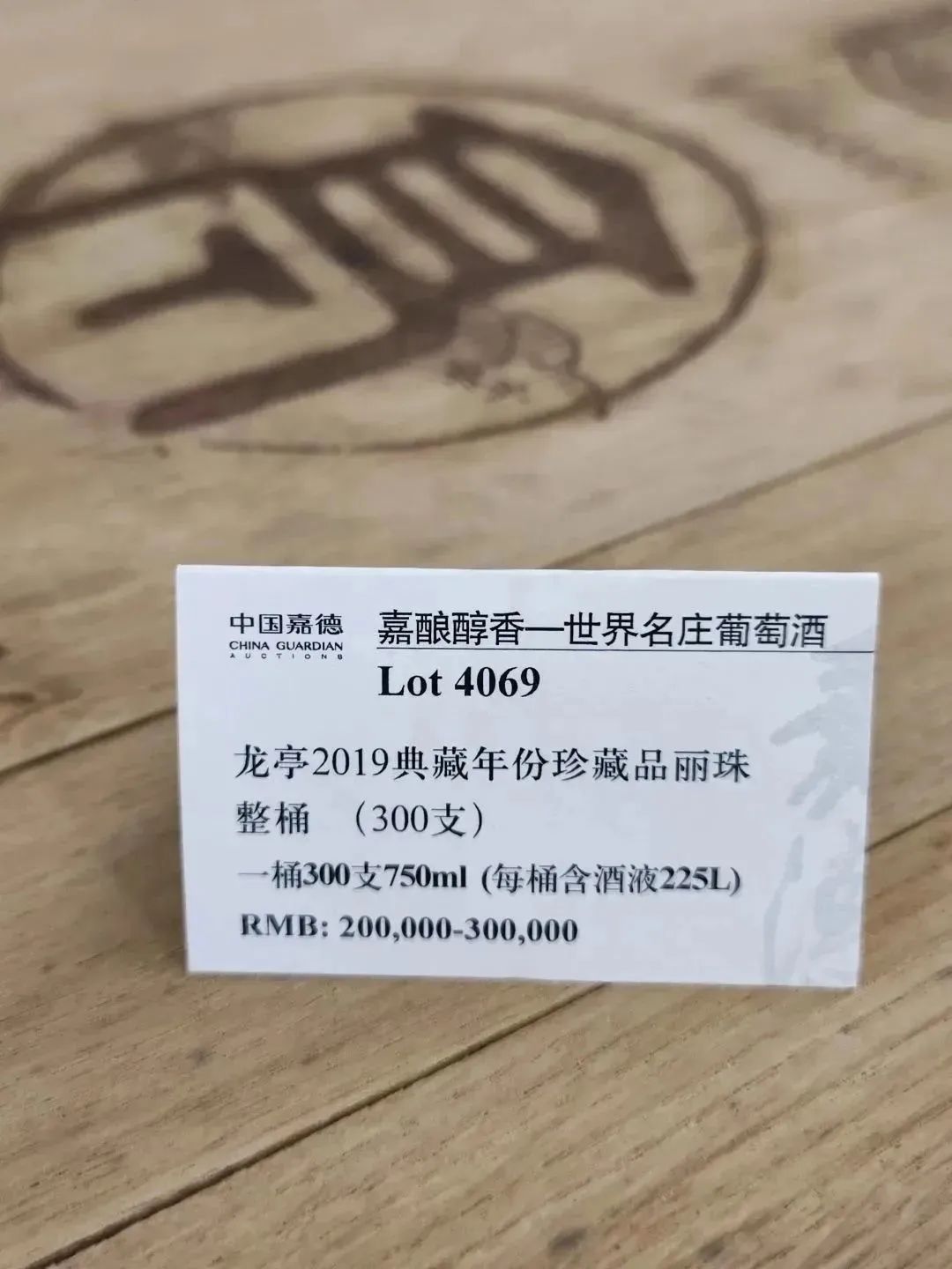 作为“嘉酿醇香——世界名庄葡萄酒”拍卖专场中唯一一个以整桶形式呈现的拍品,在全球各大顶级酒庄环伺的数百款拍品中,在超过半数拍品流拍的情况下,龙亭2019典藏年份珍藏品丽珠整桶最终以单桶23万元圆满成交,实现了中国葡萄酒在嘉德的完美首秀。