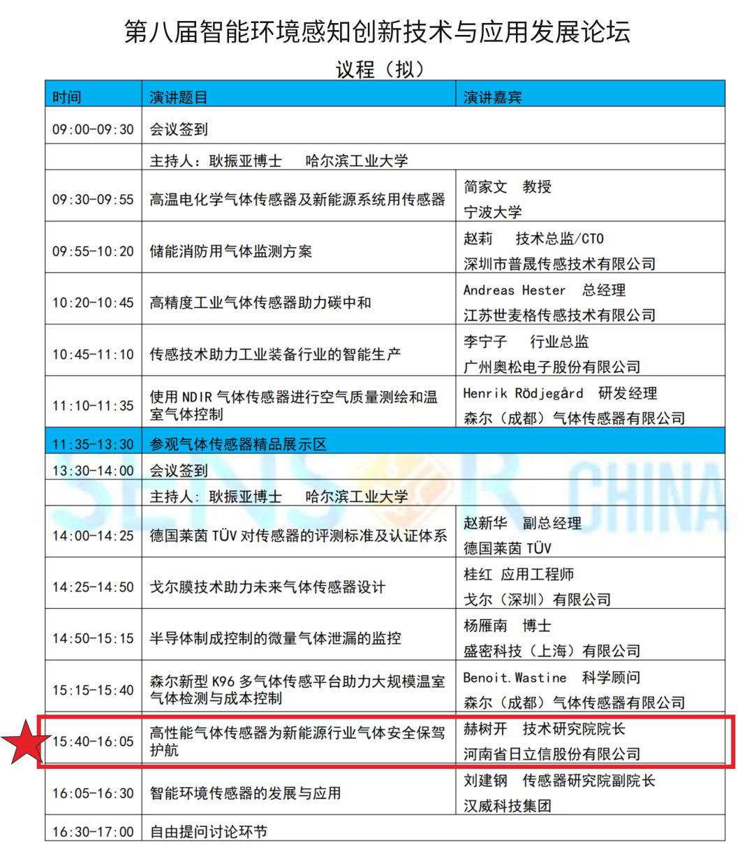 同时,日立信股份副总经理兼技术研究院院长赫树开先生应邀参加同期论坛(“第八届智能环境感知创新技术与应用发展论坛”),并将作题为《高性能气体传感器为新能源行业气体安全保驾护航》专题演讲,为新能源行业气体安全应用提供专业的传感技术支持,助力新能源产业安全健康发展。