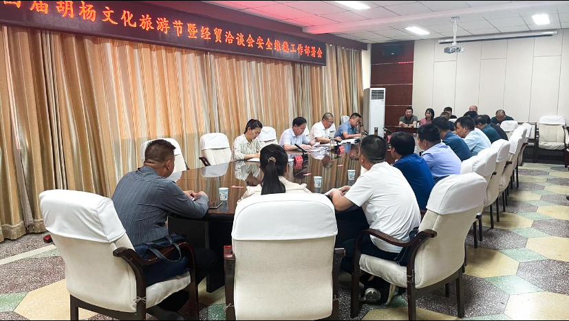 9月6日,第十四届胡杨文化旅游节暨经贸洽谈会安全维稳工作部署会召开,县委常委、政法委书记、县政府党组成员孙云峰,县政府副县长、县公安局局长张维华,县政府副县长李娜,县政府副县长刘琨出席会议。