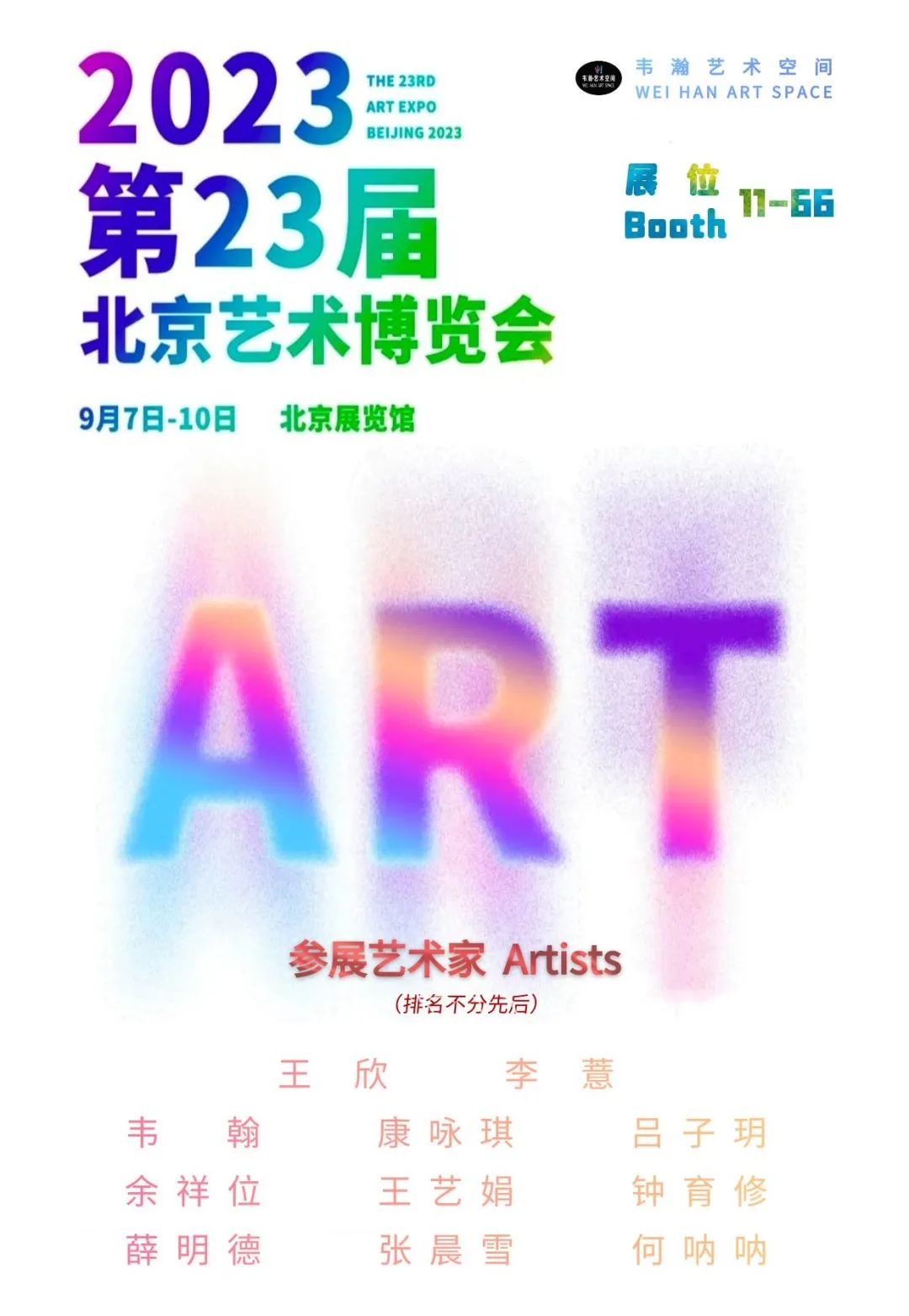 韦瀚艺术空间荣幸宣布参展2023第23届北京艺术博览会,呈现11位优秀艺术家的精彩力作。展览已于今日成功启幕,展期将持续至9月10日,欢迎各界朋友到场观展!