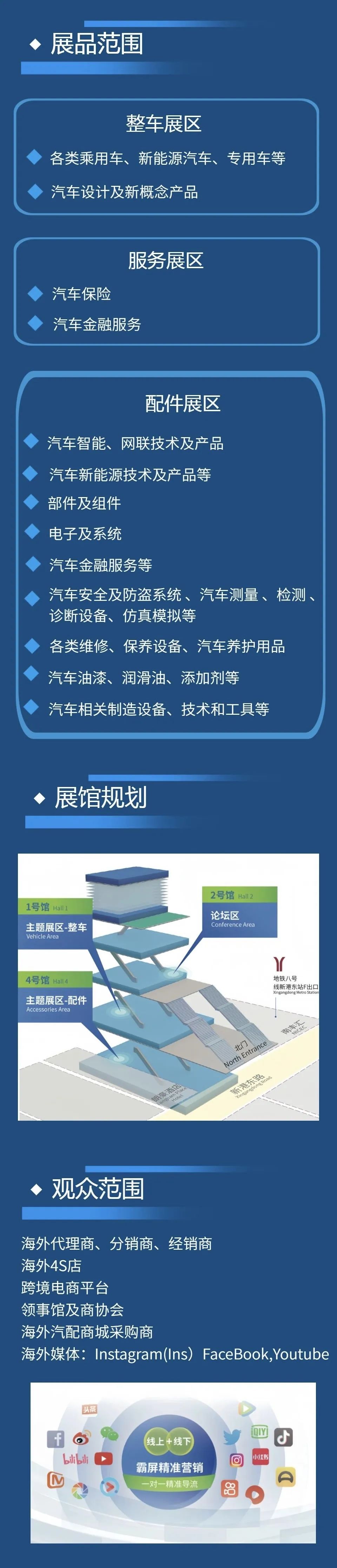 主办单位:广州市汽车服务业协会 灵感国际展览(广州)有限公司展会将聚焦新能源汽车出口贸易,并以“主题展+行业论坛”的形式,为新能源汽车制造商、供应商和全球买家提供一个国际合作交流平台。展品以新能源汽车整车、二手新能源汽车整车为主体,动力电池与材料、充换电技术与配套设施、智能网联及技术应用、汽车零配件、海外汽车售后服务、汽车金融保险、物流服务等展品类别为补充,打造新能源汽车产业出口生态链融合展会。顺应产业发展趋势,紧跟前沿科技和热点领域,覆盖全产业链上下游,力促相关产业跨界融合、协调发展。本次展会与广交会一期同期举办,且展馆地理位置优越、交通方便,将共享全球30万买家资源,在此展示能提升品牌认知度和市场占有率,塑造良好品牌形象,有效提升参展品牌的国际影响力。同时,本届展会将依托广州作为粤港澳大湾区及华南地区枢纽城市的区位优势,以及强大的汽车市场需求,搭建国际化专业展览展示、行业交流合作和交易平台。本届展会同步举行——2023新能源汽车产业出口论坛,论坛由1场主论坛+4场分论坛组成,内容涵盖:新能源汽车产业链海外投资、数字化赋能汽车产业出海、汽车出口合规、主题参观活动等,从汽车前沿科技到整车出口、从部件供应到市场营销管理、从渠道营销到车主消费体验,展会通过汽车趋势论坛、地区产业招商推介会等活动将全球汽车产业链条中的佼佼者聚集一堂,给行业带来全新的视角及方向引领,为汽车市场开拓出全新空间。广州市汽车服务业协会与TikTok授权运营中心—领拓跨境率先签订独家战略合作,紧抓TikTok平台全球最大的流量红利与中国汽车出口全球第一的市场红利,依托本届展会,打造线上营销和资源对接平台,扩大展会在国外新媒体的传播力和影响力。本届展会将充分依托广州市汽车服务业协会的平台优势,在展会上举办“汽车出口分会”成立仪式,充分发挥协会专业优势、桥梁纽带和资源整合的作用,为我市汽车企业开展海外业务营造更加良好的环境、吸引更优质的行业资源。此次为首届新能源汽车出口主题展会,紧扣当下行业热点,将获得众多国内外强势媒体的密集型报道,得到社会的广泛关注,为参展品牌的市场推广活动开源节流,降低营销成本,获得丰厚回报。