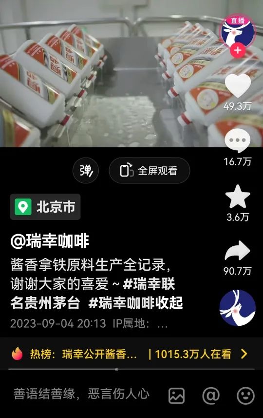 Luckincoffee瑞幸咖啡发布视频“酱香拿铁生产第一线”,展示了酱香拿铁原料生产全记录。