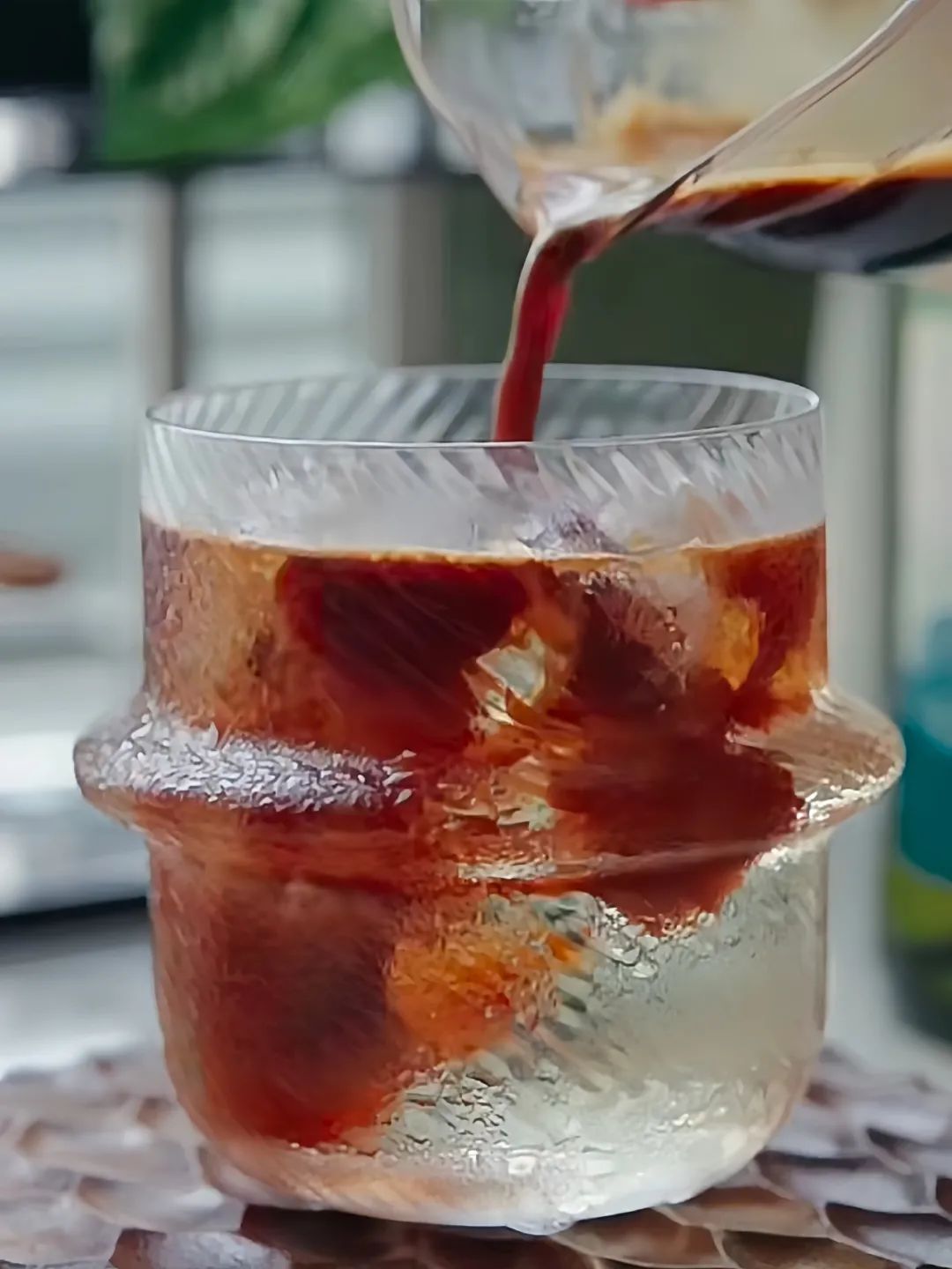 1.干红葡萄酒100ml,咖啡液100ml,50ml(气泡水/雪碧),最后加入冰块