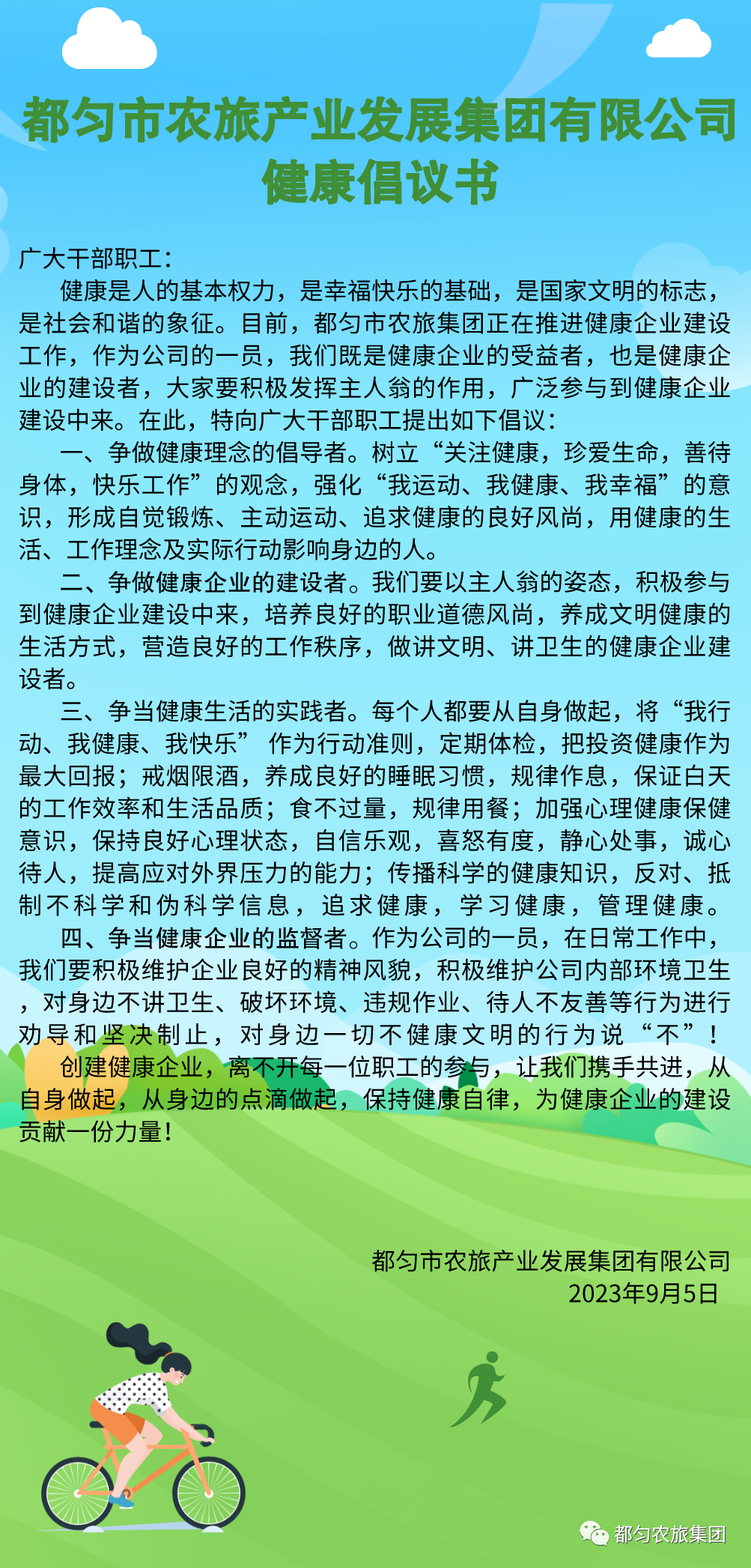 健康企业|都匀市农旅产业发展集团有限公司健康倡议书