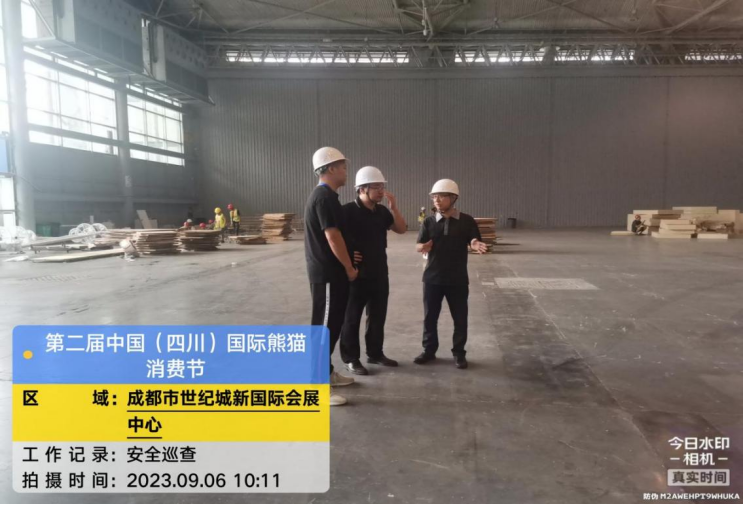 9月6日,会展公司总经理朱云昆成都世纪城第二届中国(四川)国际熊猫消费节主题展搭建现场开展安全监督检查工作