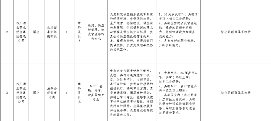 ③为保证公开招聘的充分竞争性,以不低于岗位招聘人数与资格审查合格人数1:3的比例确定开考比例,若部分岗位确因报考人数不足达不到开考比例的,按程序报四川酒业茶业投资集团有限公司研究同意后,方可继续开展该岗位招聘工作。