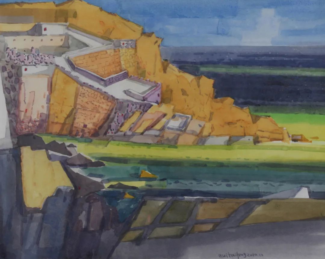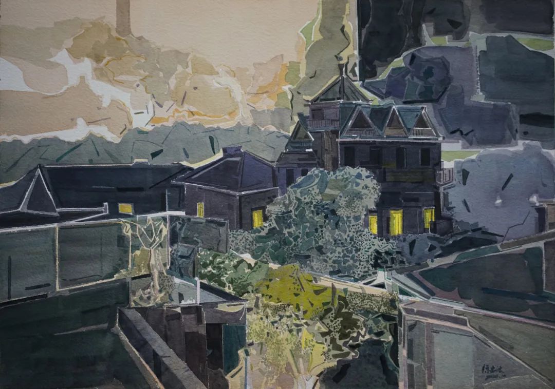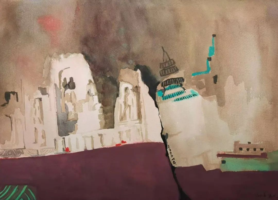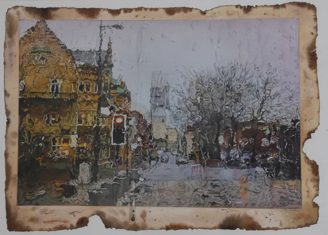王园园《古城》37cm×49cm