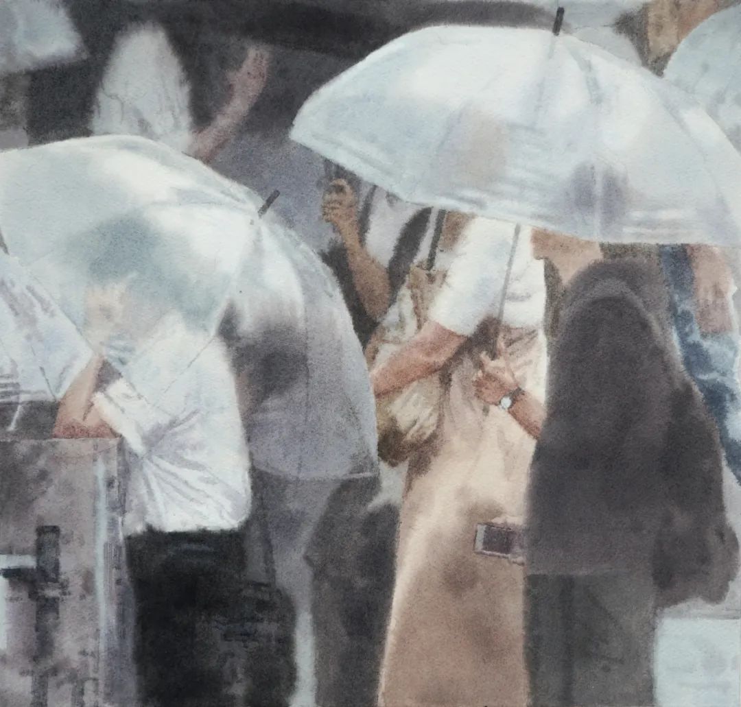 张睿《雨天·我们慢慢地走着》38cmx38cm