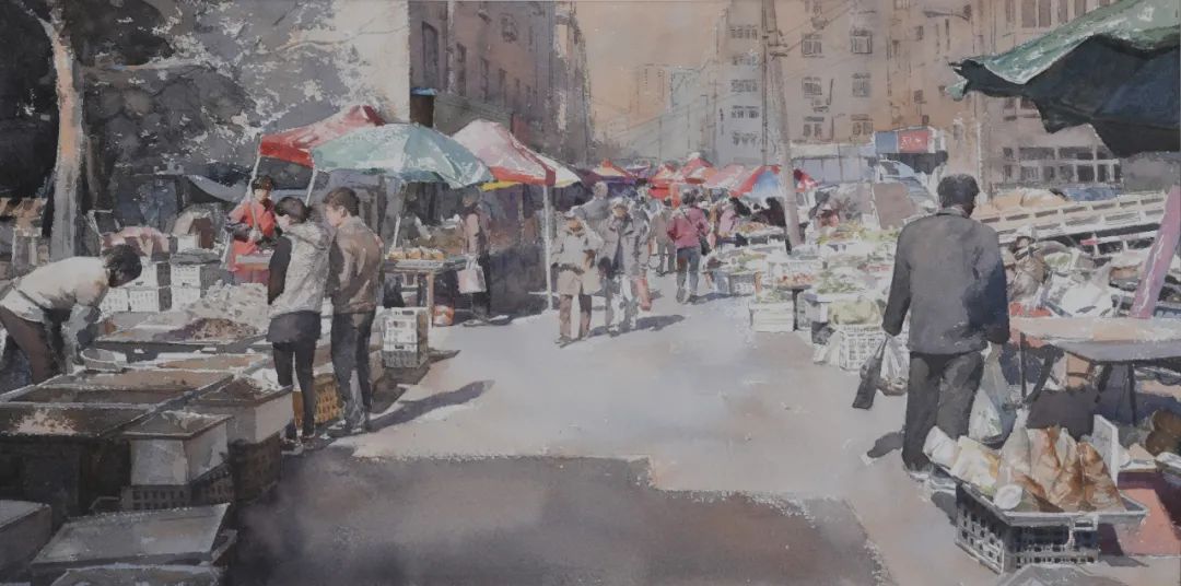 陈鹏《老李的水果摊》38cmx54cm