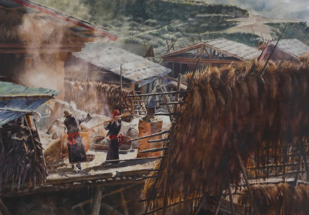 耿旺《屯堡写生05-风之际会》34cmx49cm
