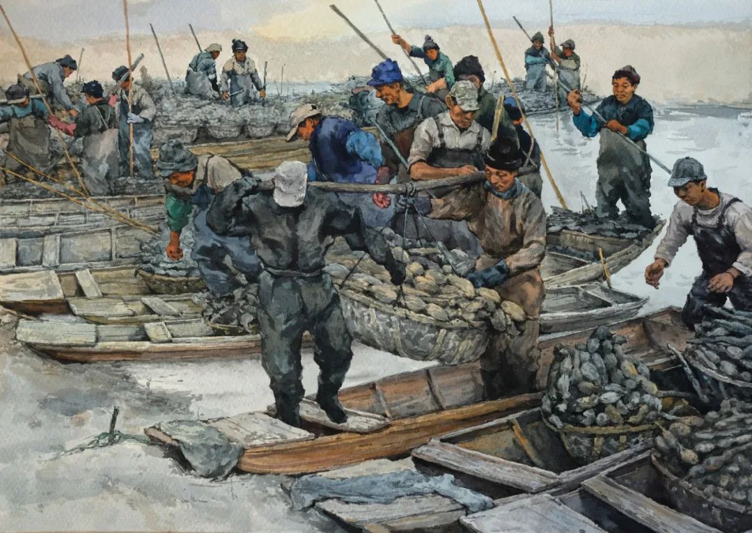 崔建国《渔民上岸奔小康》38cmx53cm