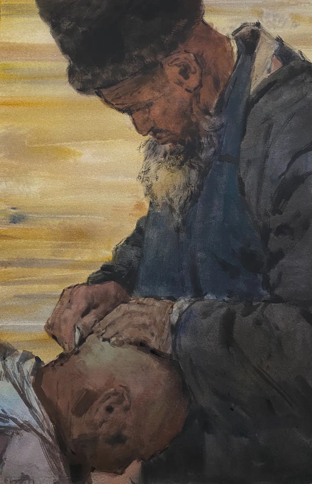 张立志《贴了膏药的军叔》54cmx37cm