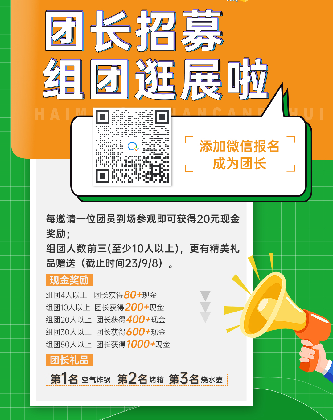 3、展会现场核实际到场人数后,联系团长微信转账。