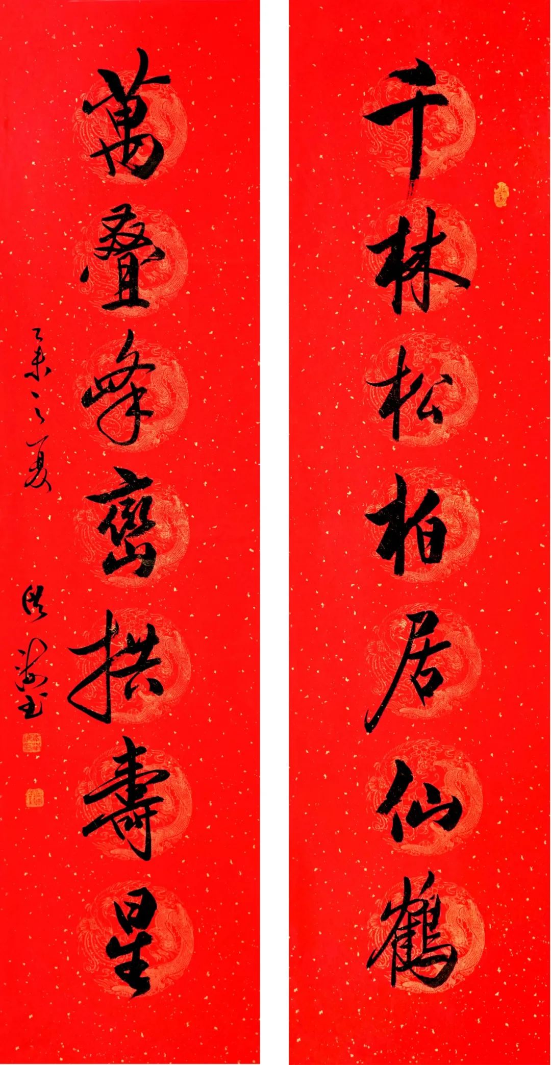 对联是中华民族独有的艺术形式,它追求对称美、均衡美、韵律美、节奏美。千百年来一直受到广大人民群众的喜爱和欢迎。李洪海遵循恩师启功先生的教诲,在书法园地的耕耘中,注意对对联的学习研究,不仅广泛收集,而且认真整理临摹。此次展出的一百幅对联书法作品,是由几百件作品中精选出来的。相信欣赏这些书法作品不仅对中国传统文化有更深刻的理解。洒脱的书风和崭新的装裱形式也会给您带来美的精神享受。(共100幅,样作6幅)