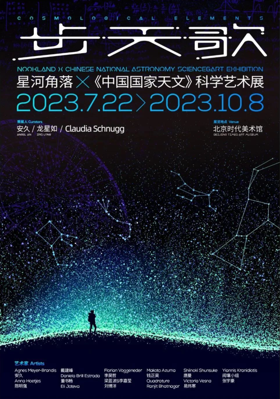 ?展览时间:2023年7月22日-2023年10月8日?参观时间:10:00-22:00(21:30停止入场)。?门票:单人票128元;双人票238元;优待票88元(1.2米以上未成年人、60岁以上老人及相关优待人员;12岁以下儿童需由成人陪同);1.2米以下儿童免票(需成人陪同,1名成人限带1名儿童)。(注:孕妇、幼儿、高血压、心脏病及眩晕症谨慎购票)此次展览由星河角落×《中国国家天文》携手时代美术馆联合重磅打造。历时三年,全球范围内甄选天文摄影作品、天文主题艺术装置等多种表现形式的作品,凝聚奥地利林茨电子艺术节、纽约卡拉莫艺术中心、巴塞尔电子艺术之家、柏林艺术研究院等多位知名艺术家的灵感。“步天诀”是我国古代一部以诗歌形式介绍全天星宫的著作,之前仅传于皇家和观象台之间,普通百姓不能得见。本次展览涵盖10个国家近30件跨界艺术作品,它们由跨界艺术家、天文科学家、天文摄影师共同创造,让天文科学从研究的高阁中走出,以多媒介光影的方式打造了一场能被普通人感受、体验甚至互动的星河宇宙之旅。
