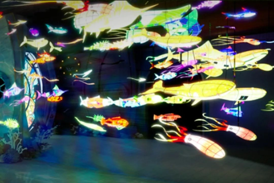 展览共有两个厅,在第一个厅你能体验到深海奇景、劈海登船、魔法舷窗、南河船长的房间、深海之眼、电影珍贵档案等。另一个厅则像是真正进入了深海号,不仅能看到深海号大堂鱼灯穹顶,还能感受中国首台线下展出的裸眼3D“深海大饭店”西洋镜装置,了解动画起源。