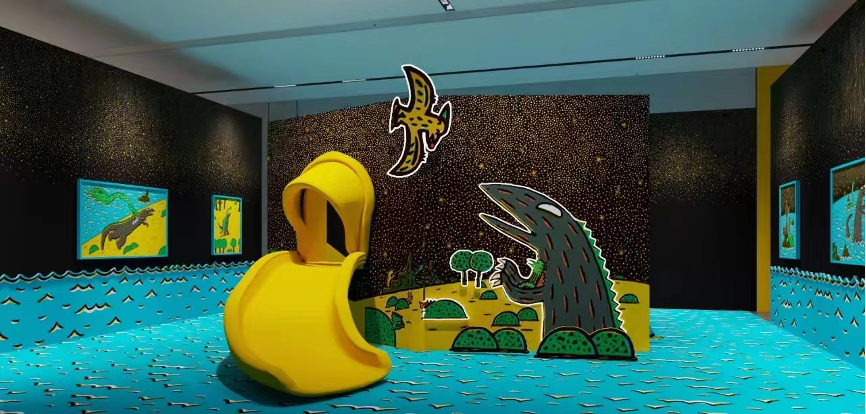 该展览是享誉海内外的华语绘本作者幾米首次大规模跨绘本展览,精选幾米五本代表性的绘本:《微笑的鱼》《向左走·向右走》《月亮忘记了》《幸运儿》《遗失了一只猫》五个作品,不同于幾米过往任何单一绘本主题叙事的策展方式,运用幾米绘画中的故事场景、 情节、⻆色、文字等元素,打造十个平行叙事空间。