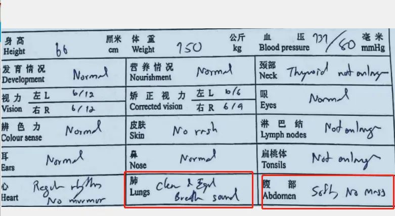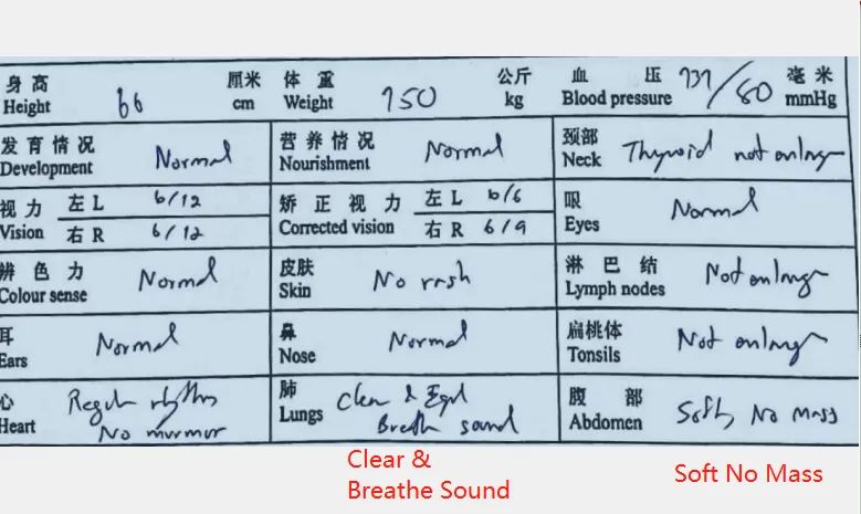 分析:检查结果只有两种结果:1正常范围内,2超出正常值,对肺部的检查结果一般就是各种声音,例如:啰音, 所以clear 没问题,&后面确实看不清,&即and,逻辑一致,和clear类似,这是正常的符合标准的体检结果,大致意思:肺部呼吸音清晰。