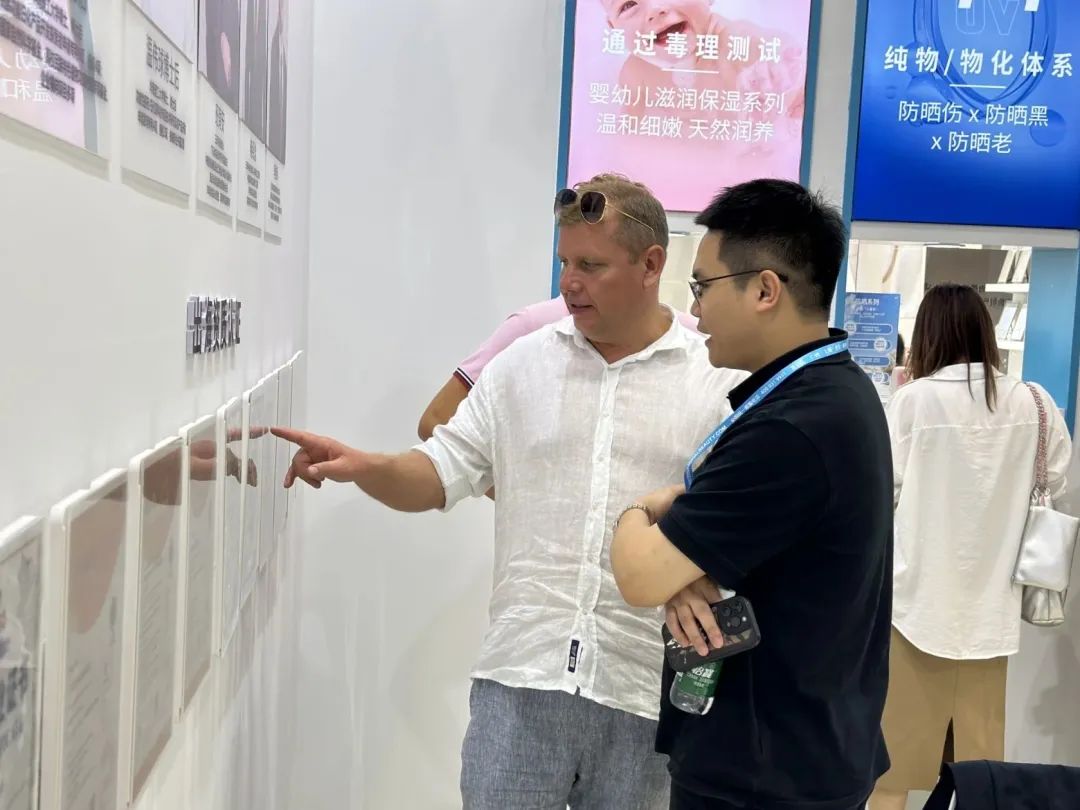 三好科技此次展会是以「全球布局,助力品牌出海」为主题,全球资质认证配套齐全:国家高新技术企业认证,专精特新企业认证、广东省化妆品基质载体工程技术研究中心认证、产品素食认证,Sedex社会责任认证、印尼MUI-HALAL清真认证、马来西亚ARA-HALAL清真认证、美国FDA认证、进口跨境、菲律宾FDA认证、海关AEO认证、印尼BPOM认证、马来西亚NOT认证等,吸引外国友人前来咨询。