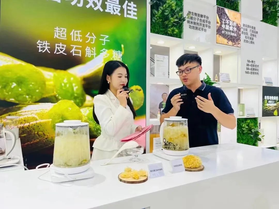 此次展会上重点展示两款植萃原料「银耳发酵液」「超低分子铁皮石斛多糖」,华南理工大学环境与能源学院博士后温伟球在三好科技现场直播中跟大家详细介绍这两款植萃的特点;银耳发酵液,来自四川通江,这跟市面上普通的银耳有很大的差异;通江段木银耳,小型朵,色泽通透润白,更易出胶,总糖含量、氨基酸、无机元素总量,以及脂质都是最优的;通过生物发酵技术处理制备的银耳发酵液更易被皮肤吸收。