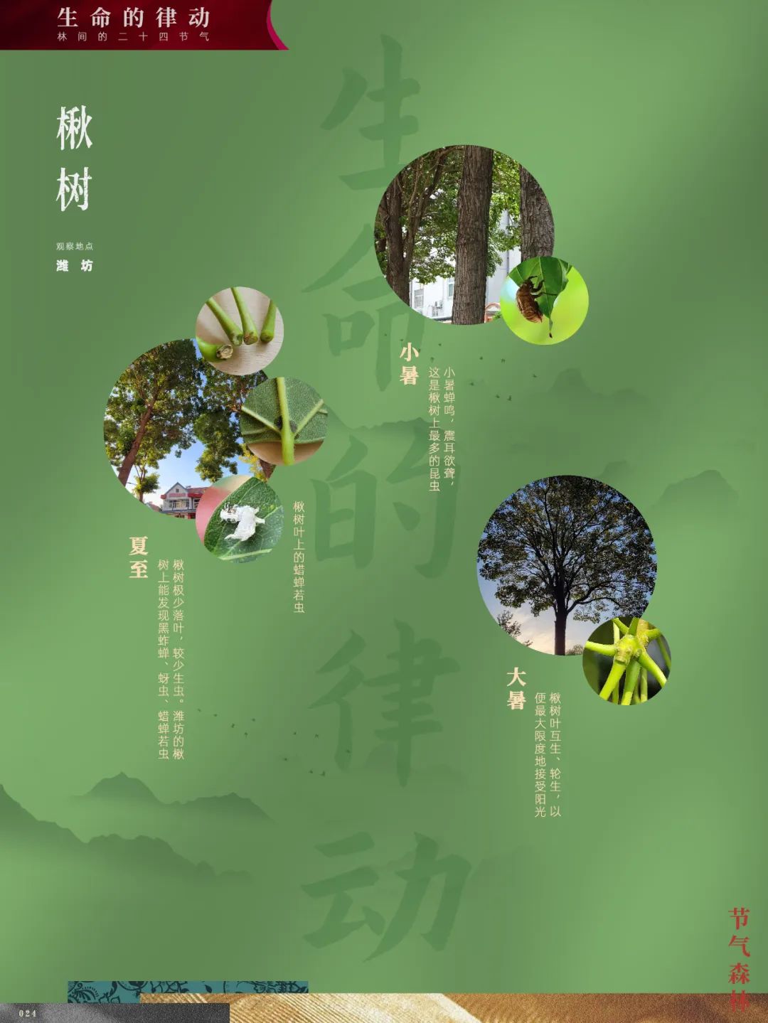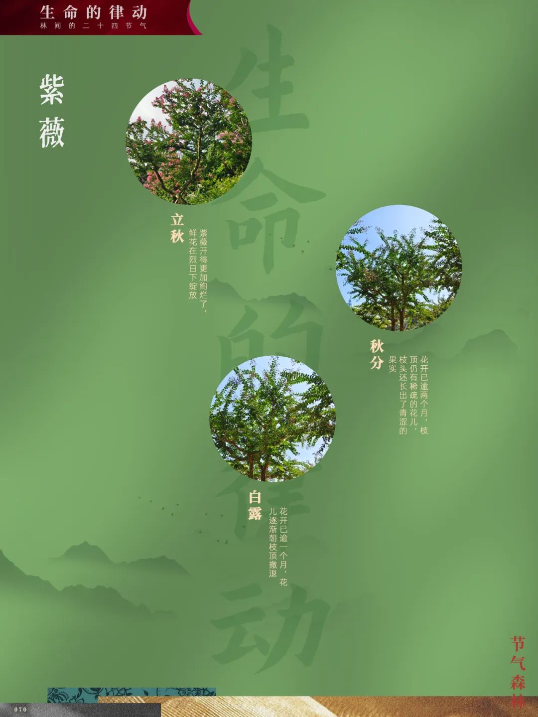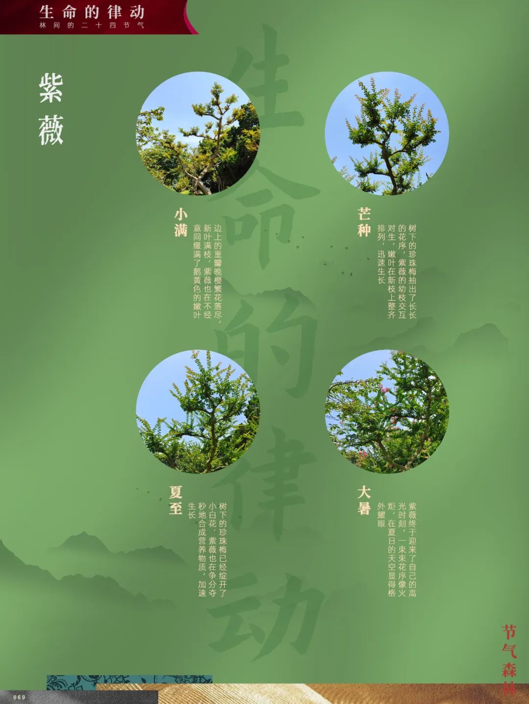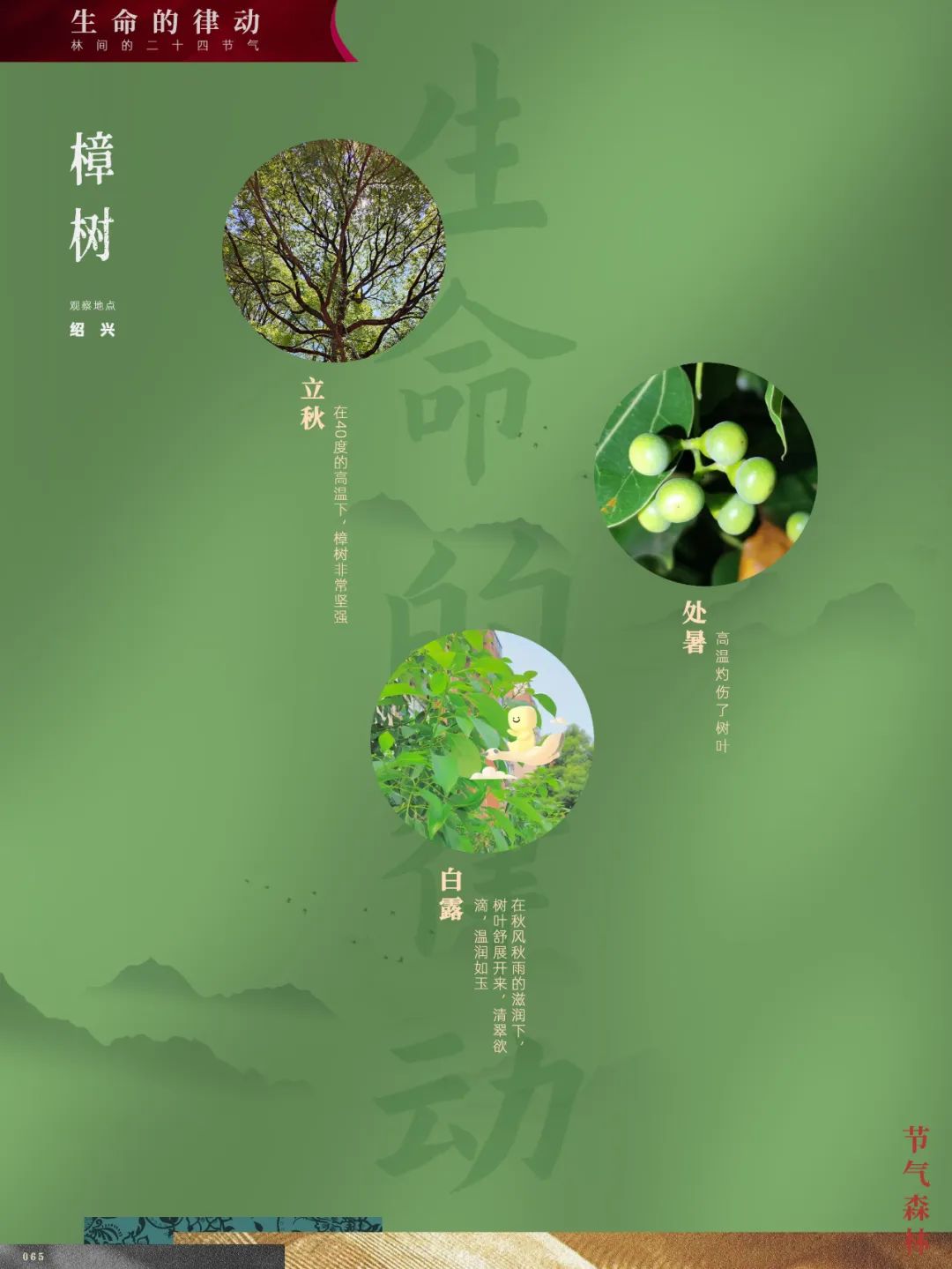 二十四节气是中国人诗意栖居的创造,是上古先民顺应农时,通过观察天体运行,认知一岁中时令、气候、物候等变化规律所形成的知识体系,蕴含着悠久的文化内涵和历史积淀,是中华民族悠久历史文化的重要组成部分。展览带我们亲近自然,从节气释义、节气森林、节气游戏等版块展现树木在二十四个节气中循环律动的过程,展现中国传统文化的智慧以及自然界勃勃的生命力。