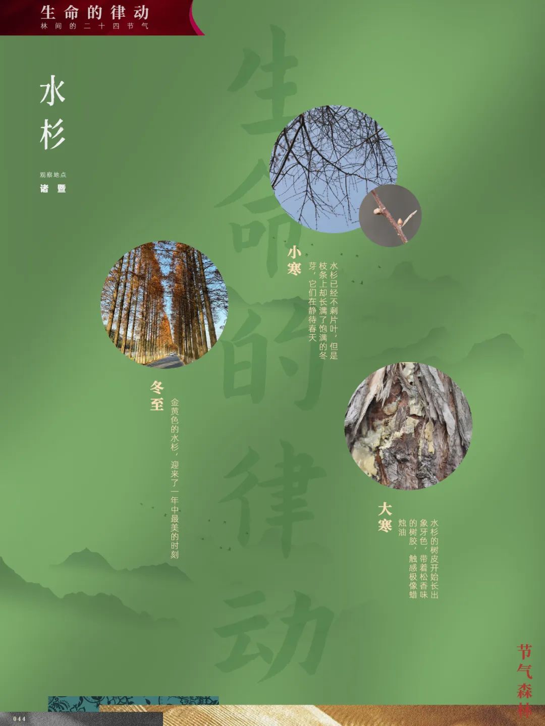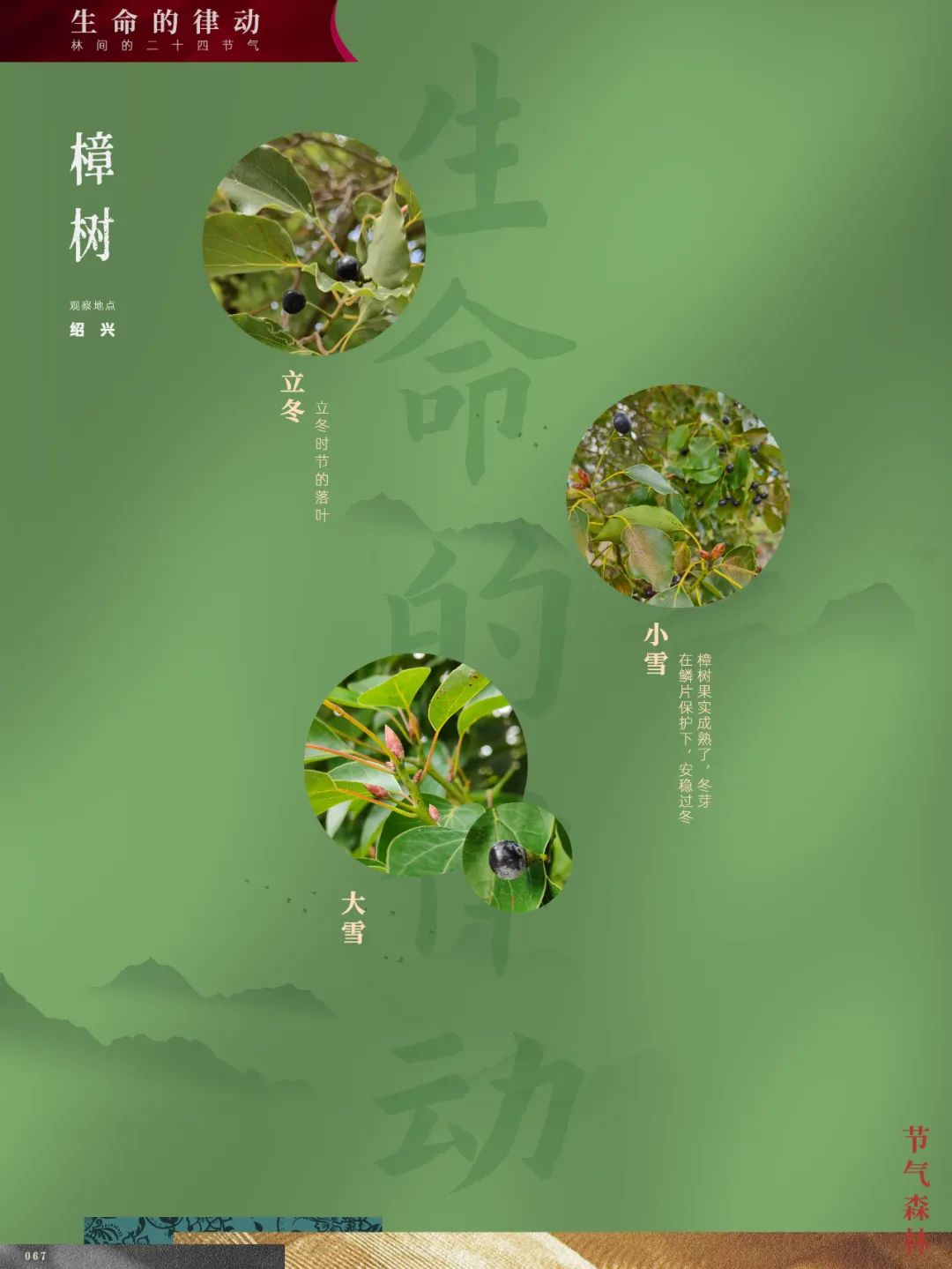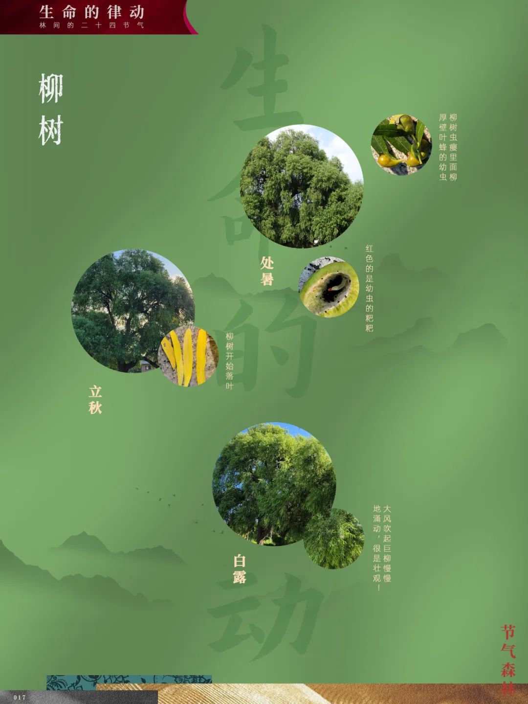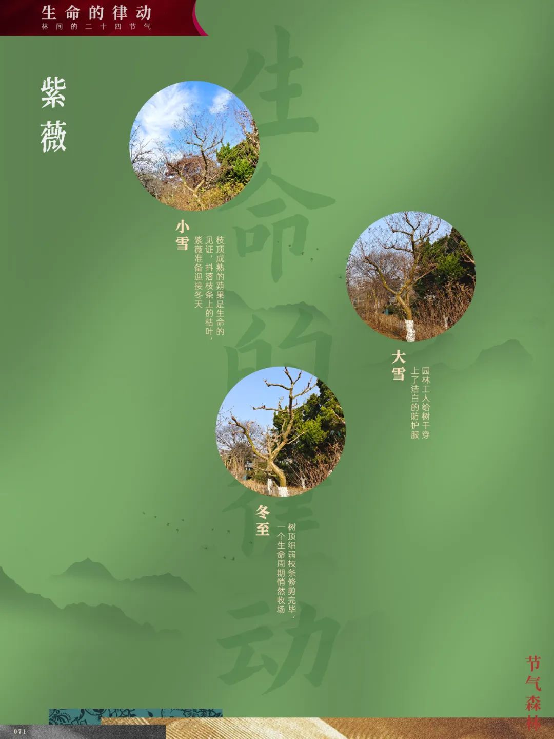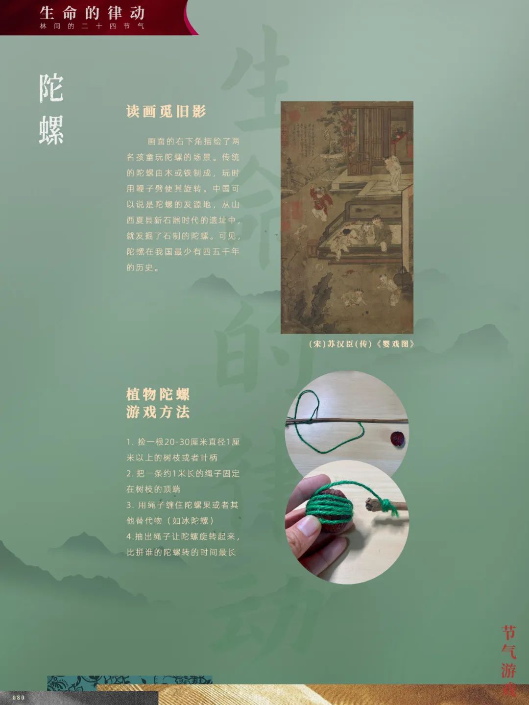 二十四节气是中国人诗意栖居的创造,是上古先民顺应农时,通过观察天体运行,认知一岁中时令、气候、物候等变化规律所形成的知识体系,蕴含着悠久的文化内涵和历史积淀,是中华民族悠久历史文化的重要组成部分。展览带我们亲近自然,从节气释义、节气森林、节气游戏等版块展现树木在二十四个节气中循环律动的过程,展现中国传统文化的智慧以及自然界勃勃的生命力。