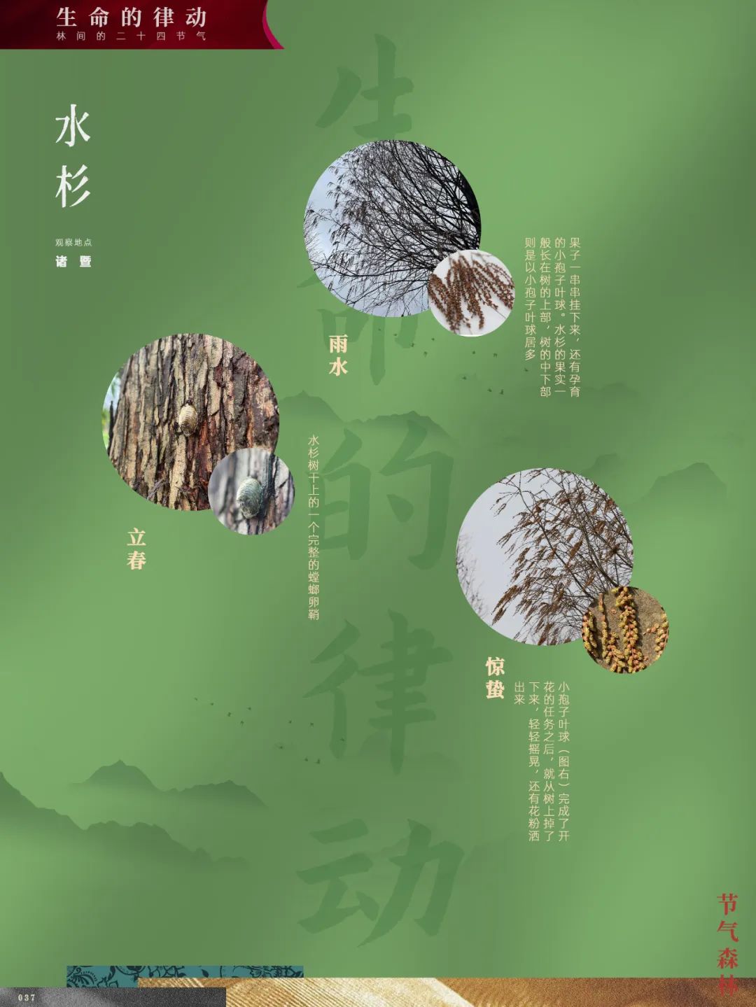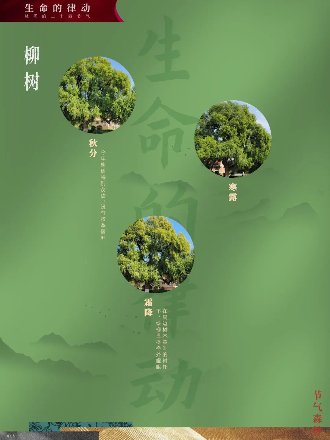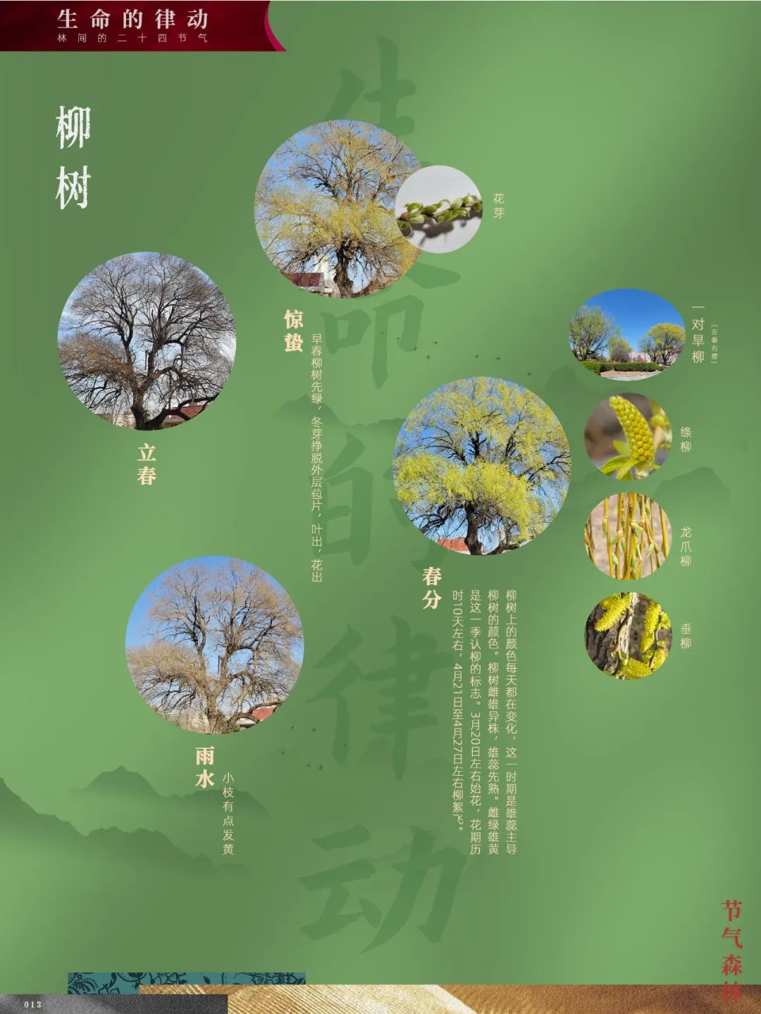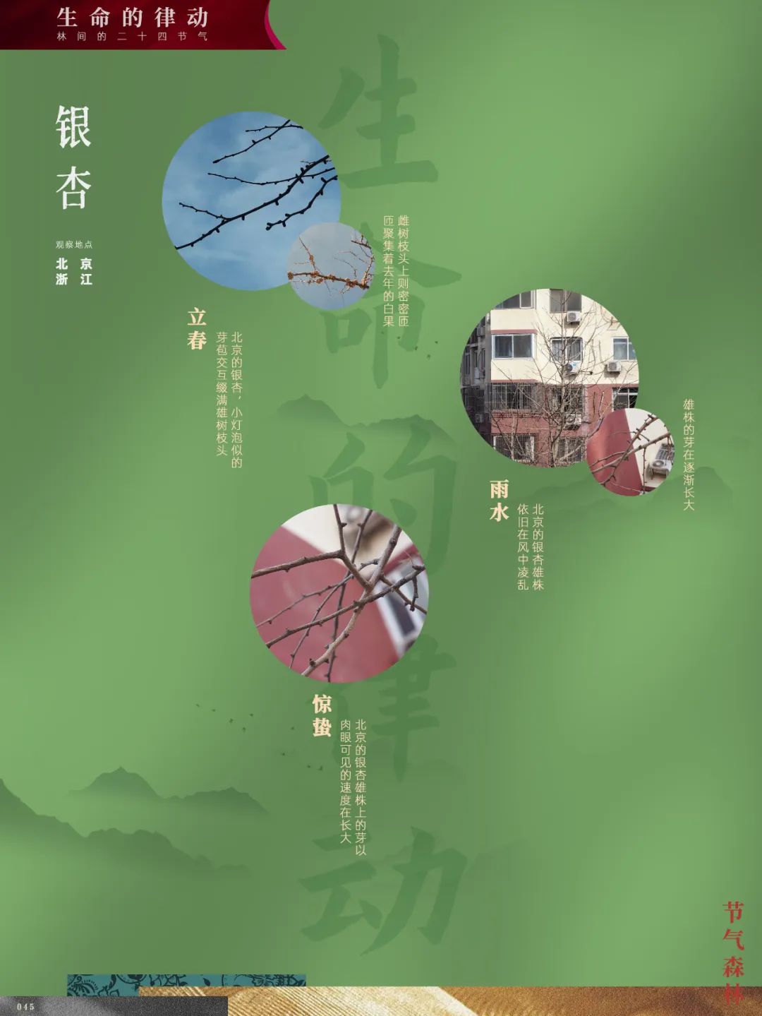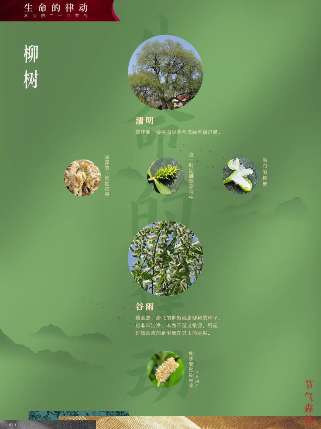 二十四节气是中国人诗意栖居的创造,是上古先民顺应农时,通过观察天体运行,认知一岁中时令、气候、物候等变化规律所形成的知识体系,蕴含着悠久的文化内涵和历史积淀,是中华民族悠久历史文化的重要组成部分。展览带我们亲近自然,从节气释义、节气森林、节气游戏等版块展现树木在二十四个节气中循环律动的过程,展现中国传统文化的智慧以及自然界勃勃的生命力。