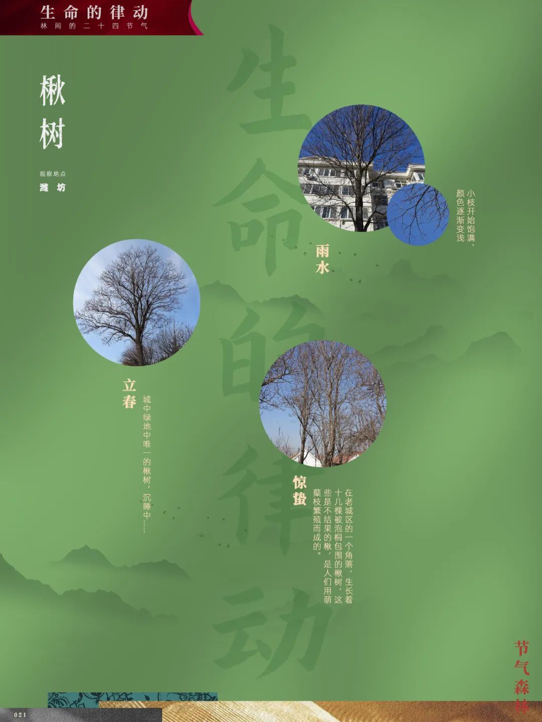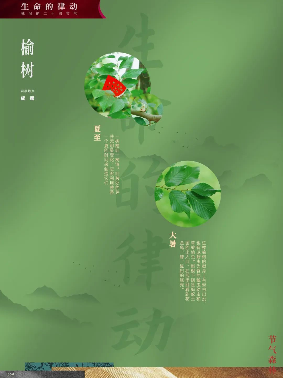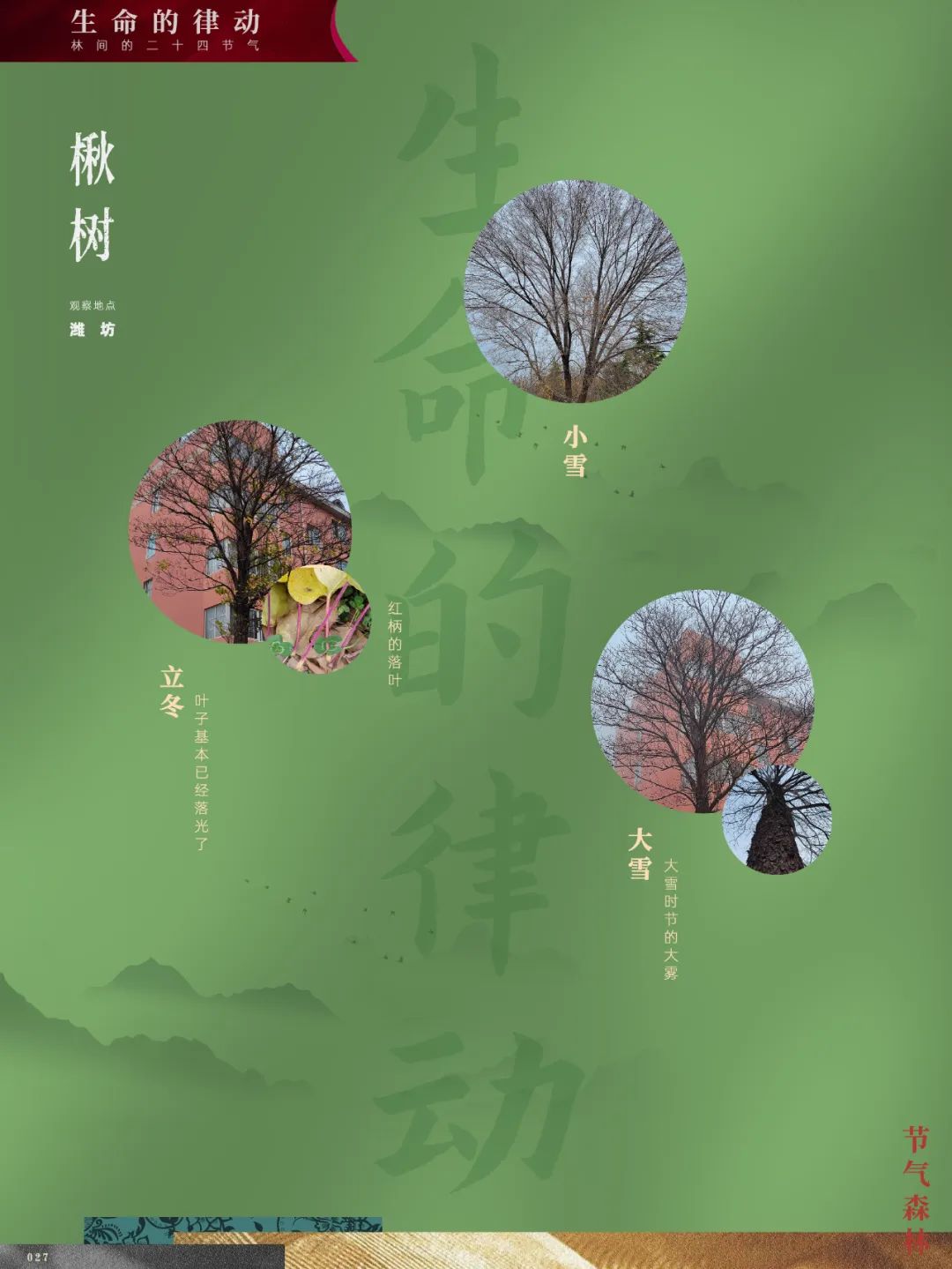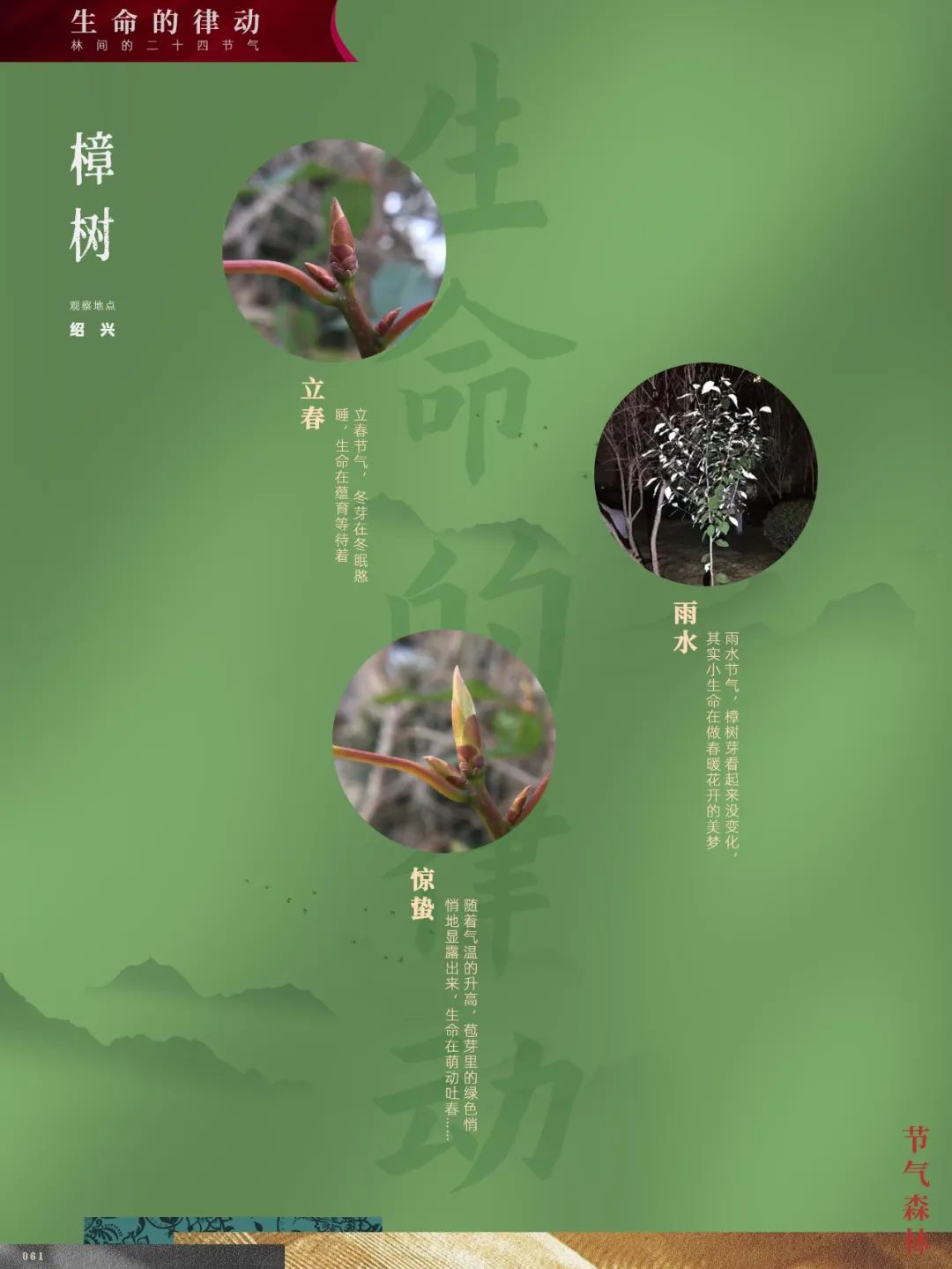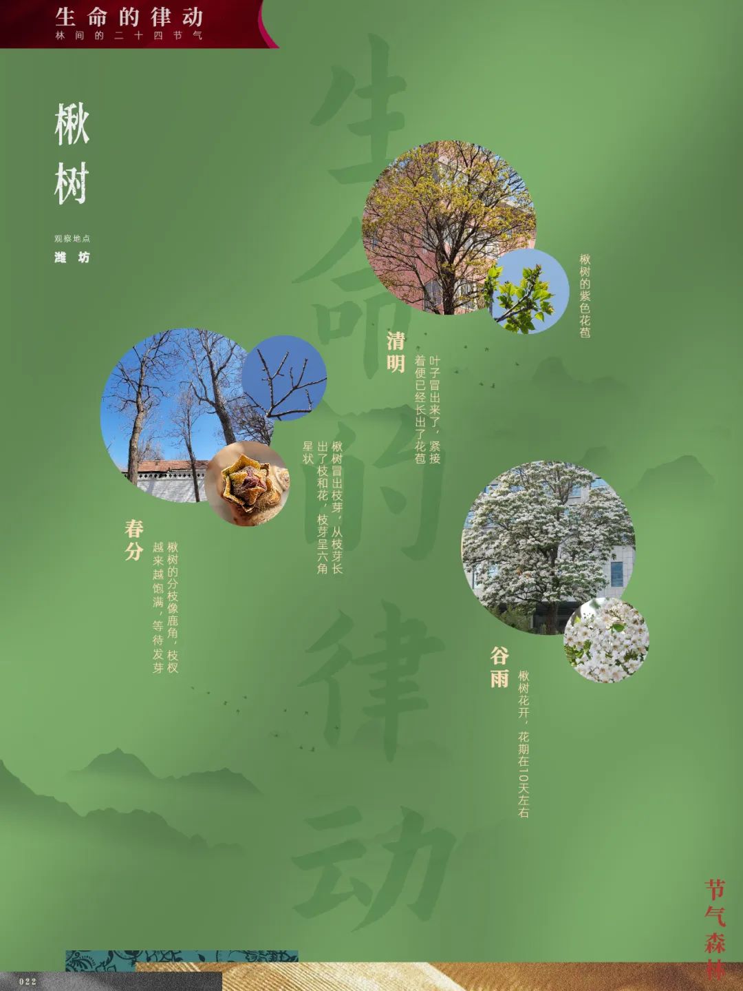 二十四节气是中国人诗意栖居的创造,是上古先民顺应农时,通过观察天体运行,认知一岁中时令、气候、物候等变化规律所形成的知识体系,蕴含着悠久的文化内涵和历史积淀,是中华民族悠久历史文化的重要组成部分。展览带我们亲近自然,从节气释义、节气森林、节气游戏等版块展现树木在二十四个节气中循环律动的过程,展现中国传统文化的智慧以及自然界勃勃的生命力。
