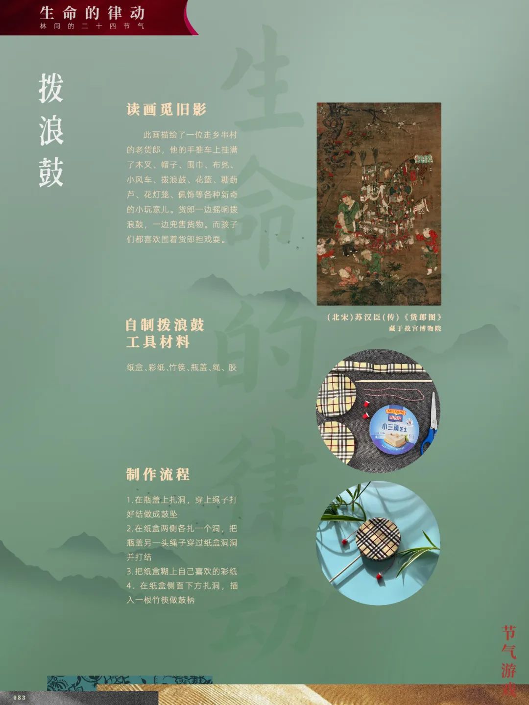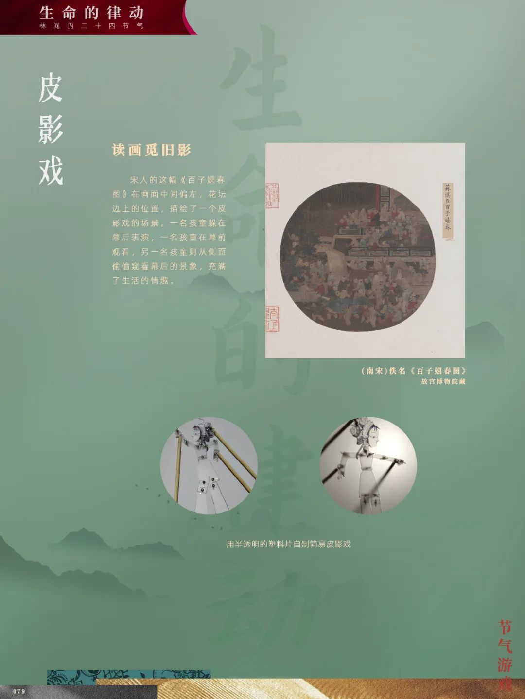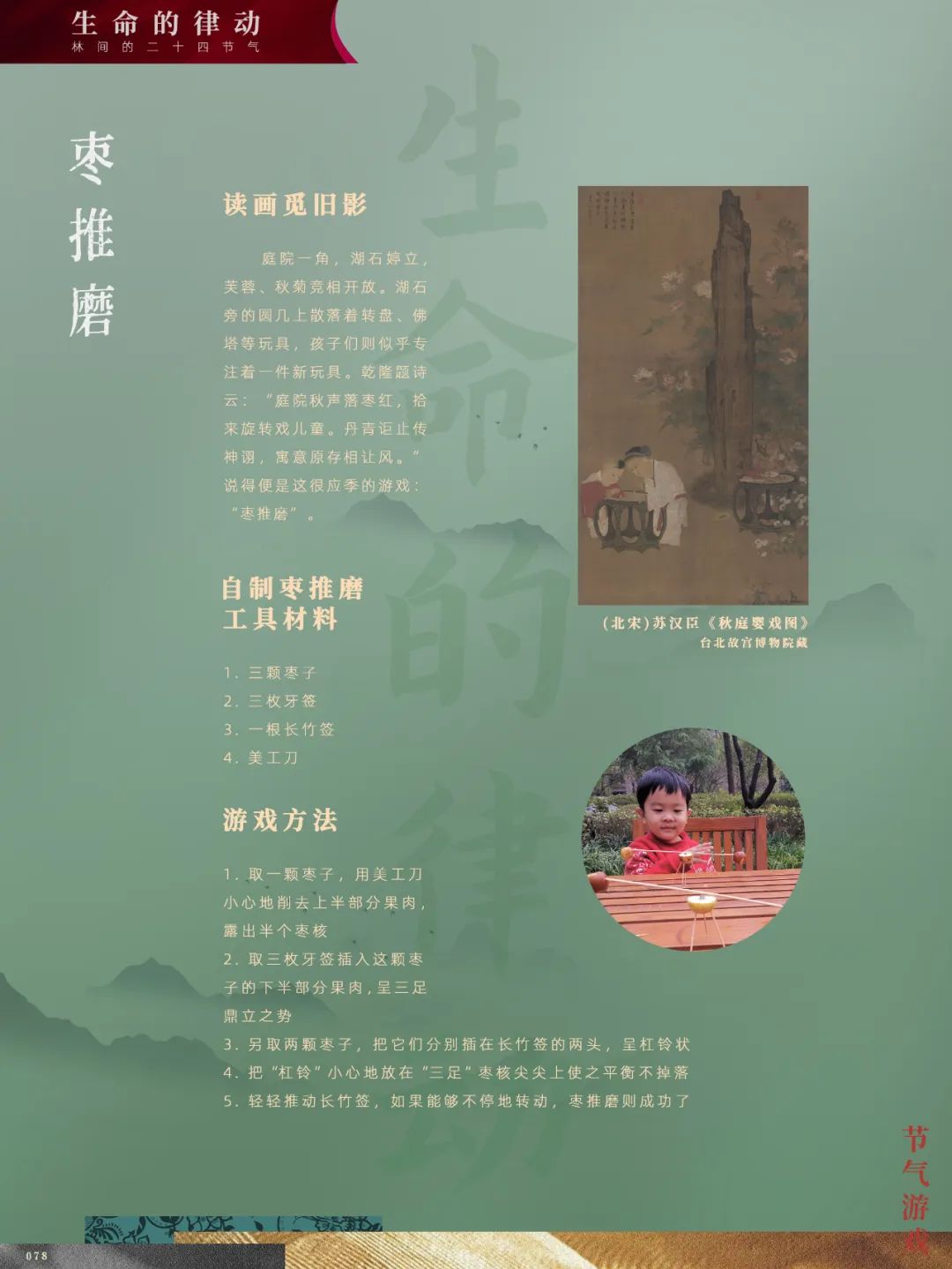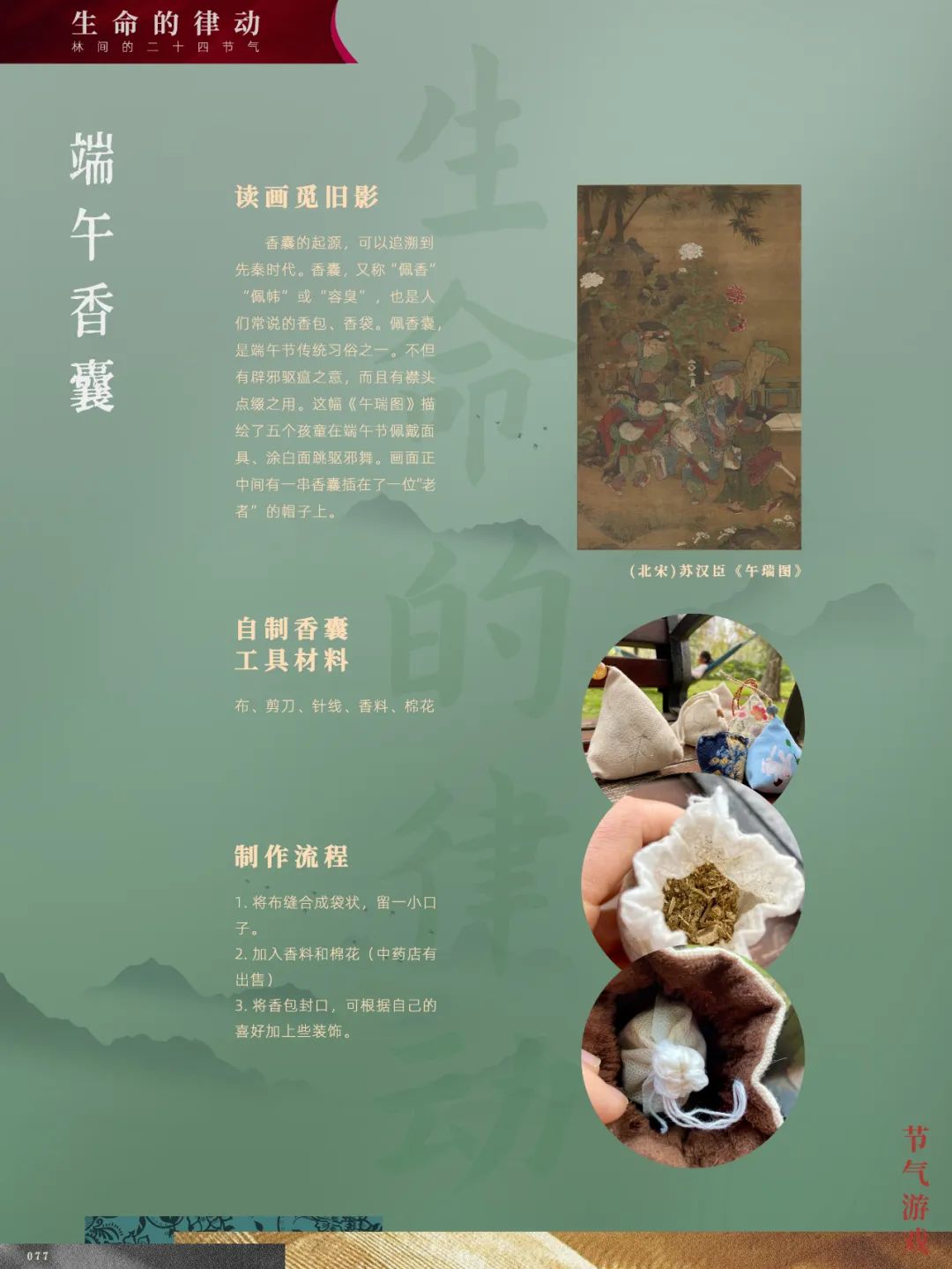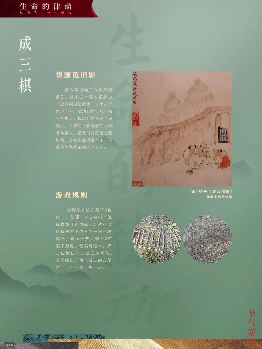 二十四节气是中国人诗意栖居的创造,是上古先民顺应农时,通过观察天体运行,认知一岁中时令、气候、物候等变化规律所形成的知识体系,蕴含着悠久的文化内涵和历史积淀,是中华民族悠久历史文化的重要组成部分。展览带我们亲近自然,从节气释义、节气森林、节气游戏等版块展现树木在二十四个节气中循环律动的过程,展现中国传统文化的智慧以及自然界勃勃的生命力。